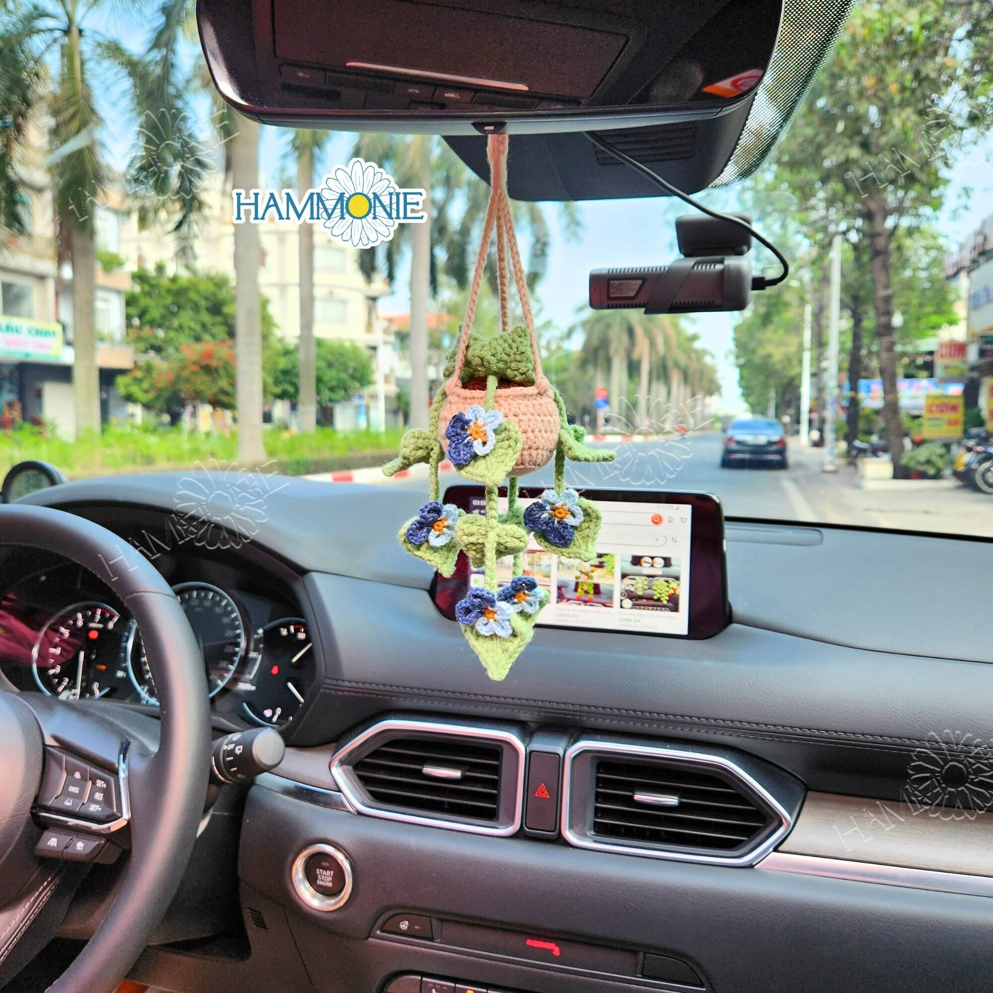Crochet Butterfly Pea Plant Car Hanging: Handmade Rear View Mirror ...
