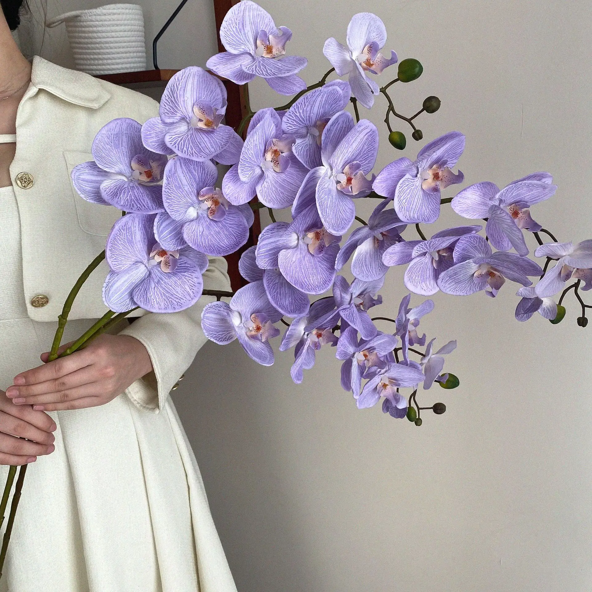 9 Heads Artificial Flower Purple Butterfly Orchid Silk White Phalaenopsis Wedding Christams Home Dec...