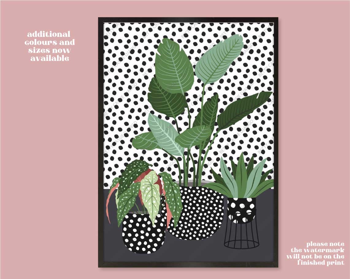 "New Colourways added to this best selling, original design \"Trio of Houseplants in Spott...