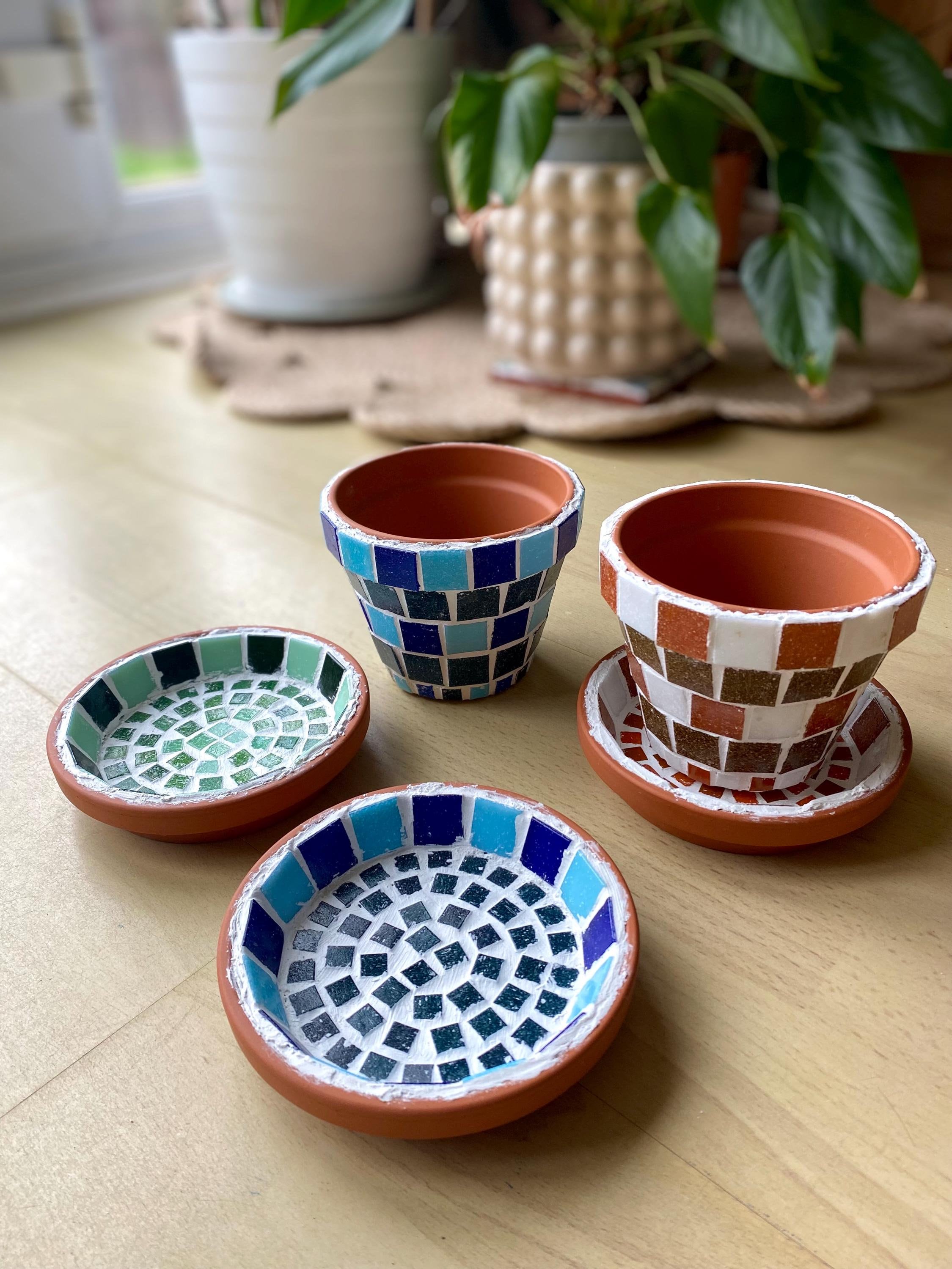 Mosaic plant pot and stand | plant pot | terracotta pot | mosaic po...
