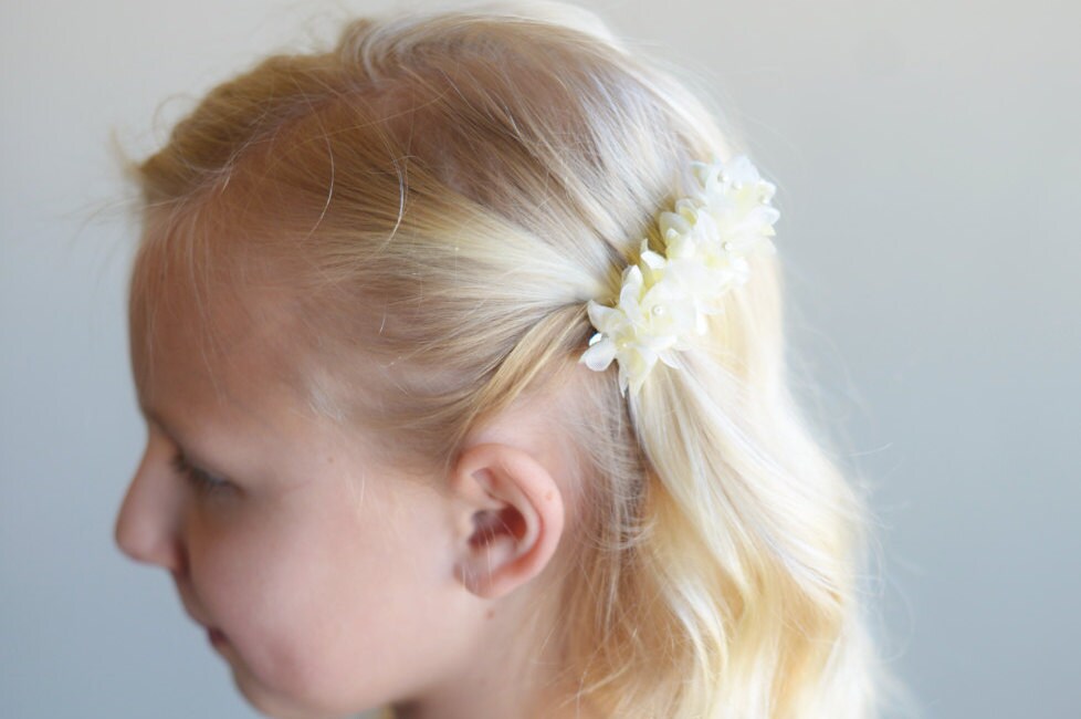 The Wood Anemone: Flower Girl Hair clip in blush pink, ivory, white...