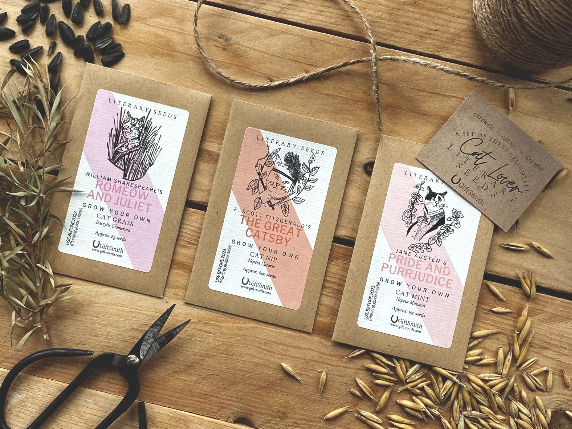 Gorgeous and delightful Literary Seeds: The Cat Lover's Garden! Three packs of gorgeous seed packets...