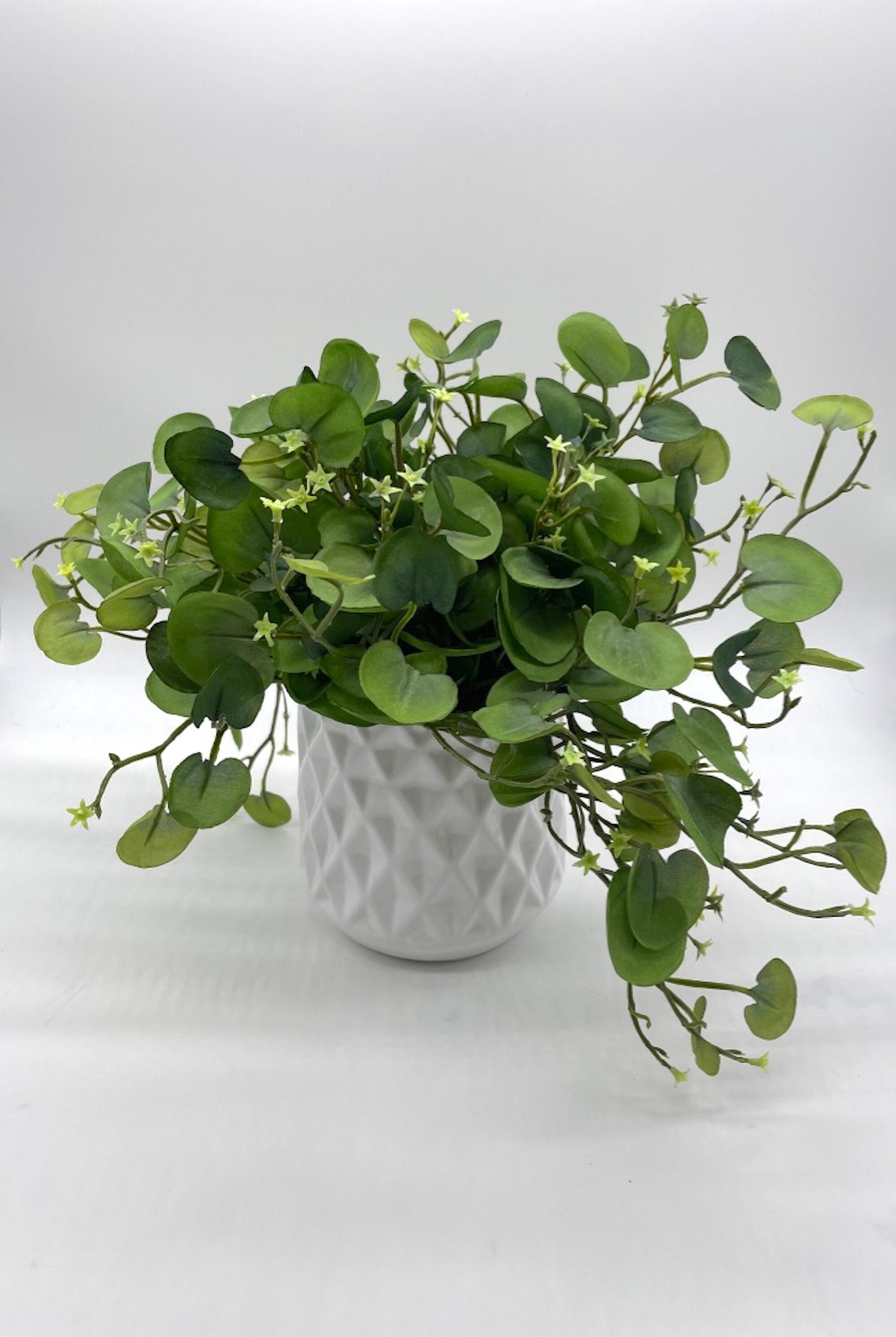 "Beautiful lush, lifelike fake plant in an elegant ceramic pot! Perfect everyday, fresh looking...