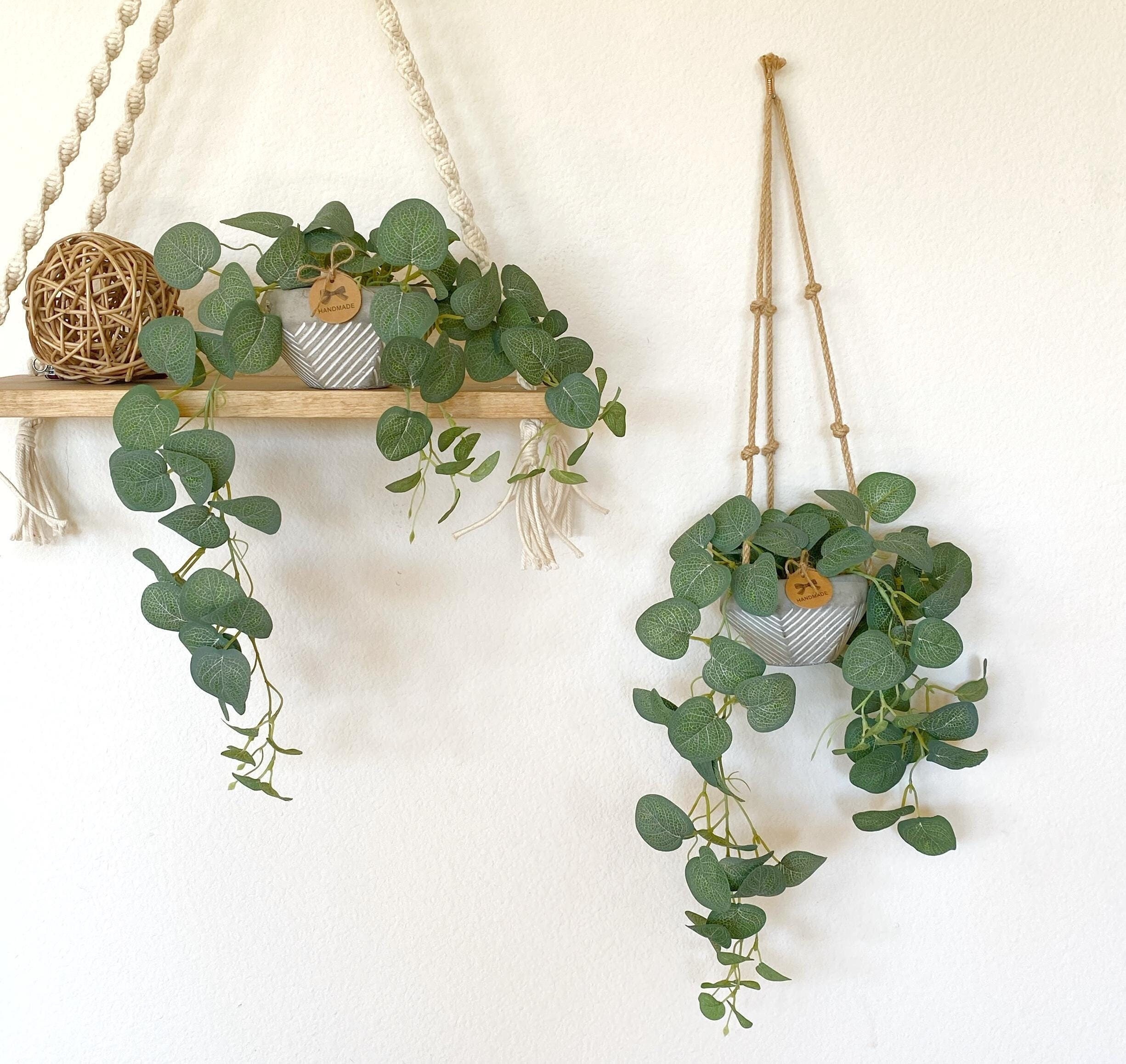"Realistic looking artificial (silk) Eucalyptus hanging Plant in handmade textured concrete Pot...