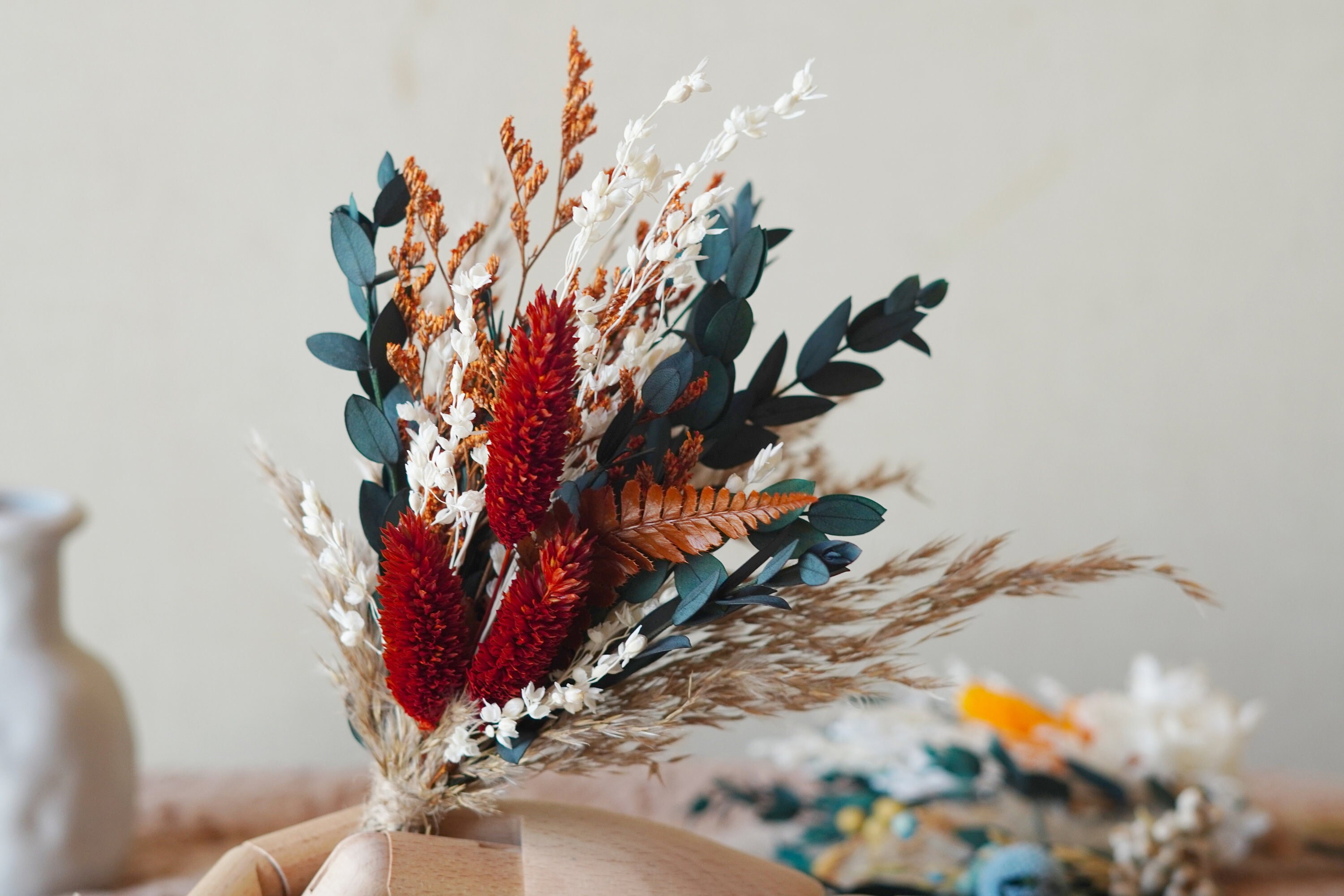 Rust Orange~Green Eucalyptus Leaves Bouquet/Deep Red Bouquet/Pampas...