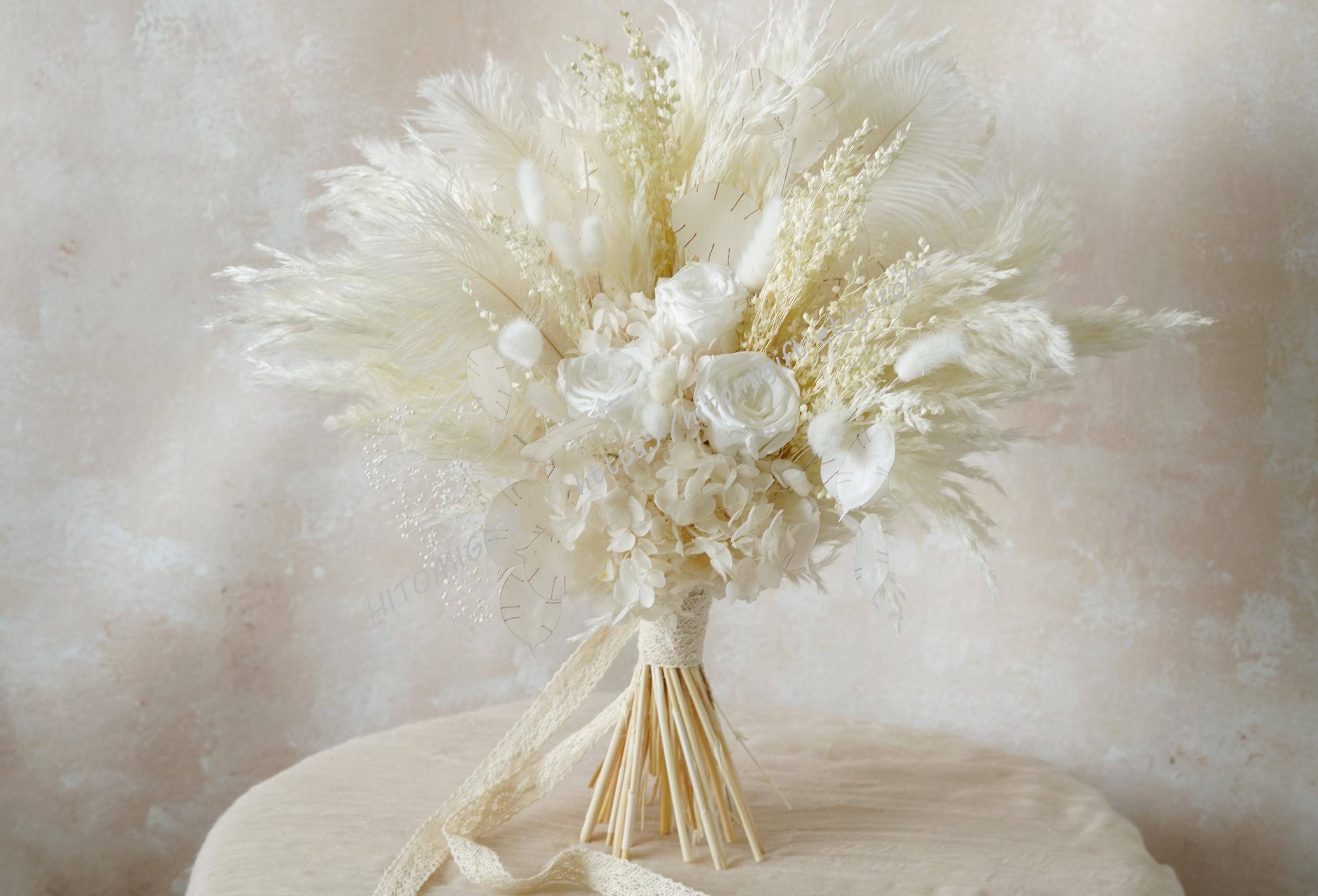 Feather and Dried Flower Bouquet,Pampas Grass Bouquet,Artificial Flower Bouquet,Boho Wedding Bouquet...