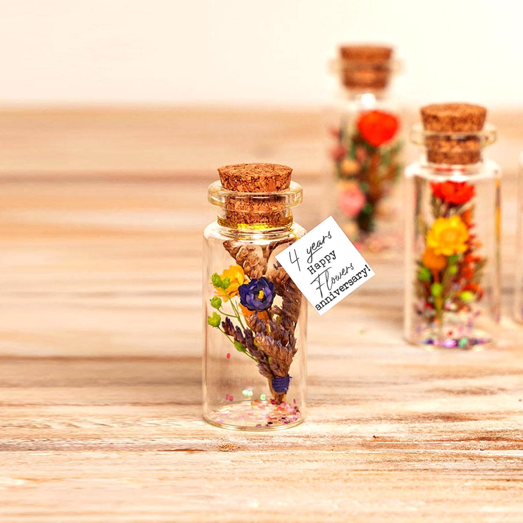 "4th Anniversary Gift - Dried Flower Bouquet in Glass Bottle, Real Dried Flowers in Miniature B...