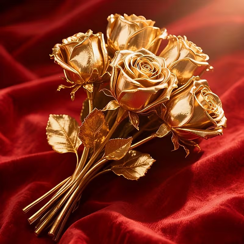 6PCS Valentine's Day Gold Rose Artificial Flowers – Realistic...