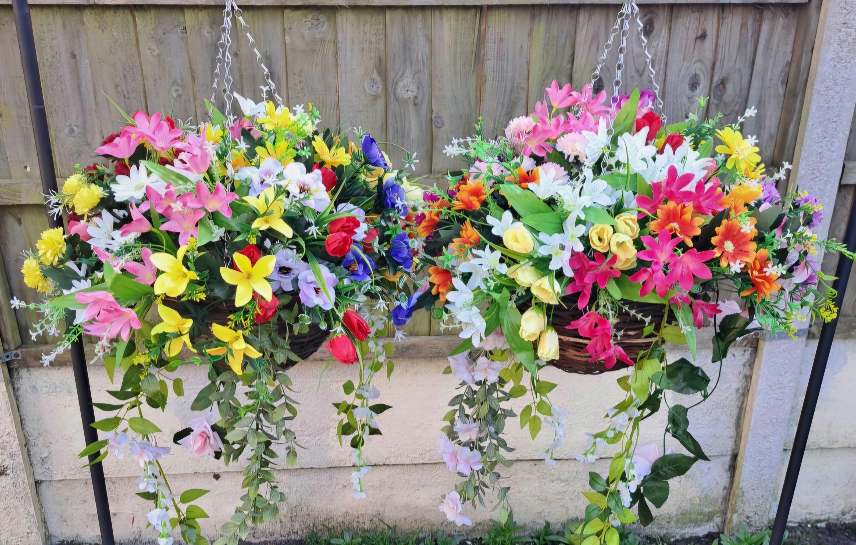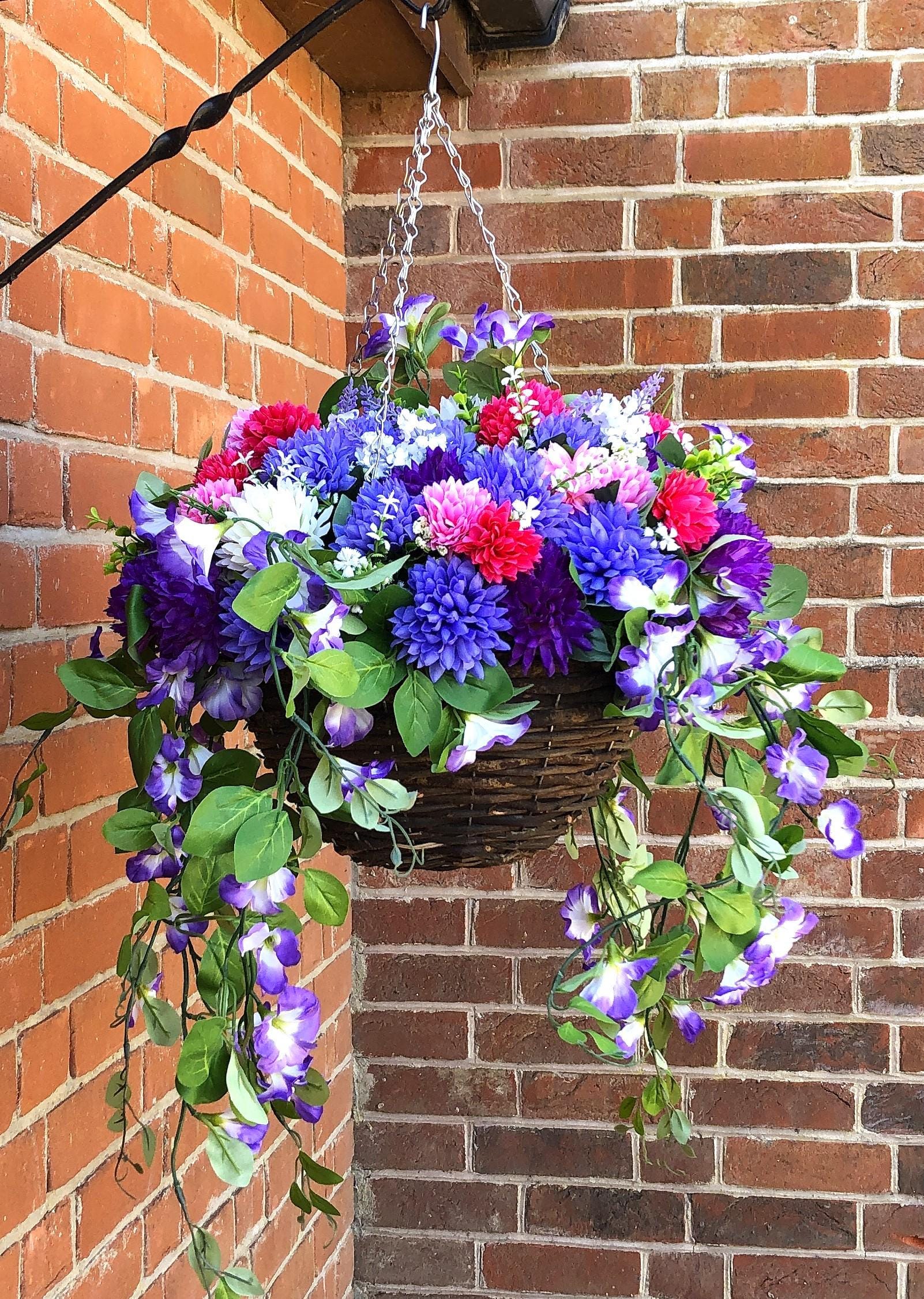 Pink White Blue Artificial Flower Hanging Basket Faux Flowers baske...