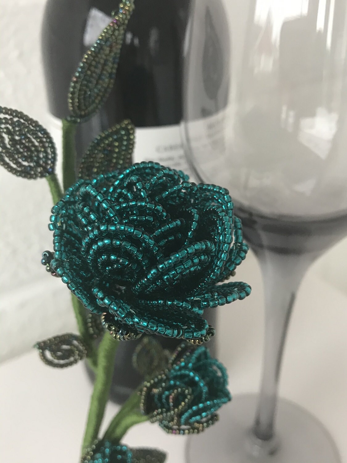 "French beaded, free standing \"Forever\" London Blue Topaz Rose; hand crafted indivi...