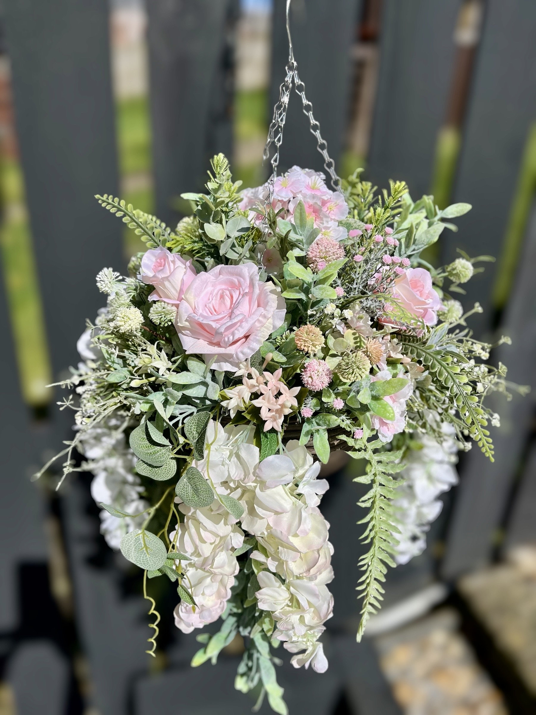 Artificial hanging basket, pastel pink and white artificial flower ...
