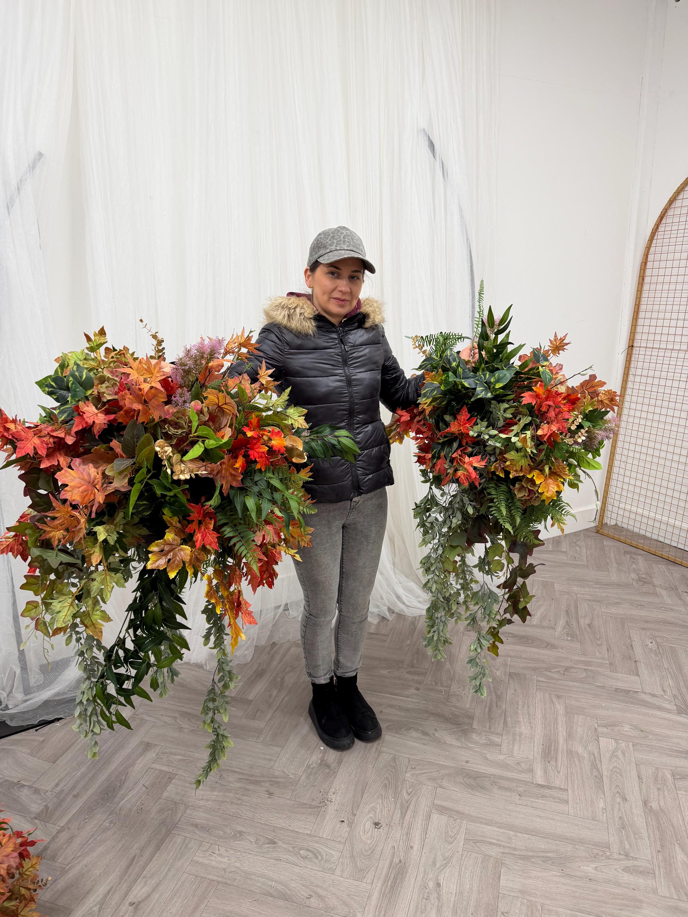 XL Fall Flower Hanging Flower Basket: Outdoor Autumn Decor