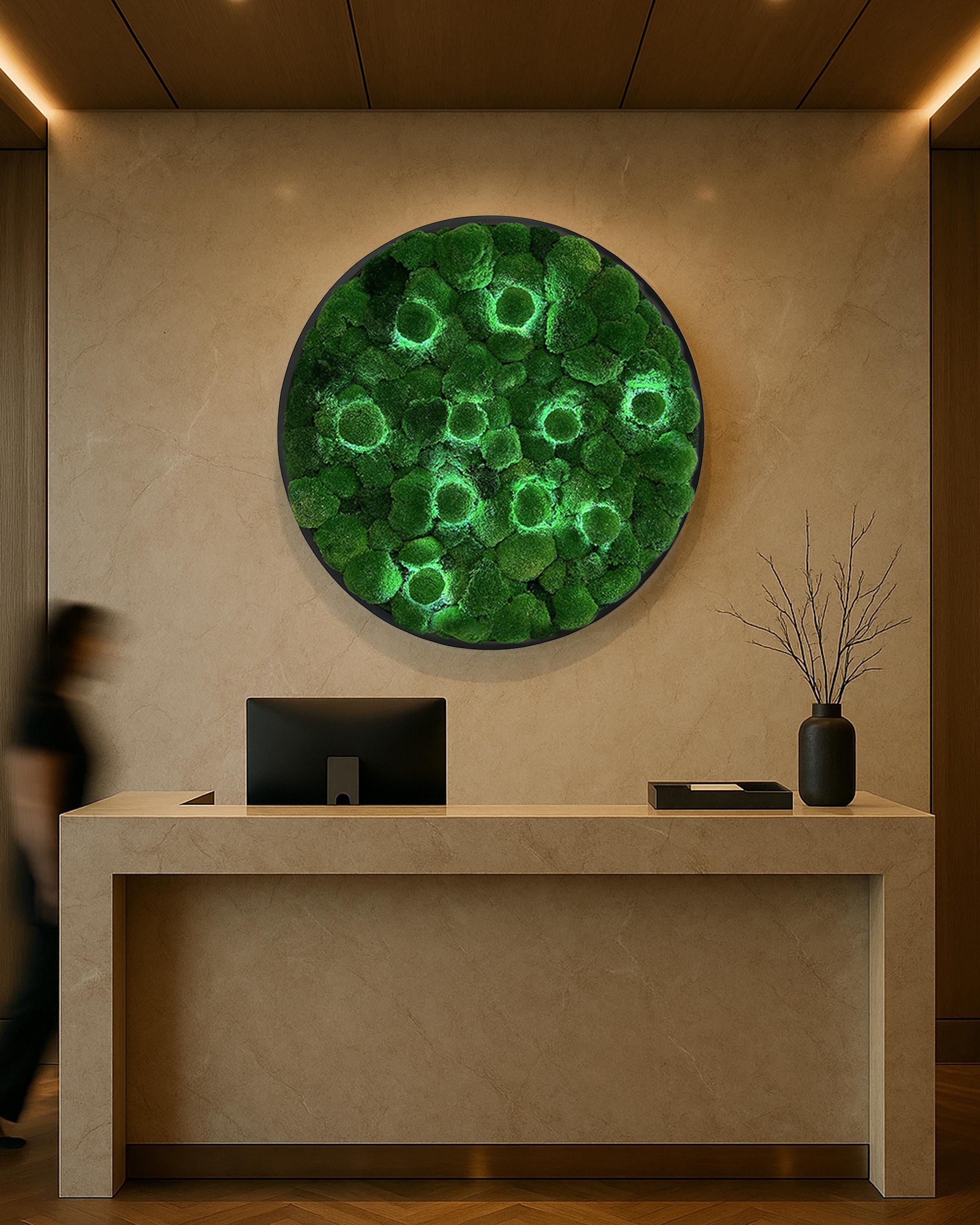 LED Extra large Round moss wall art Aesthetic room decor Preserved moss wall art Circle moss wall ar...