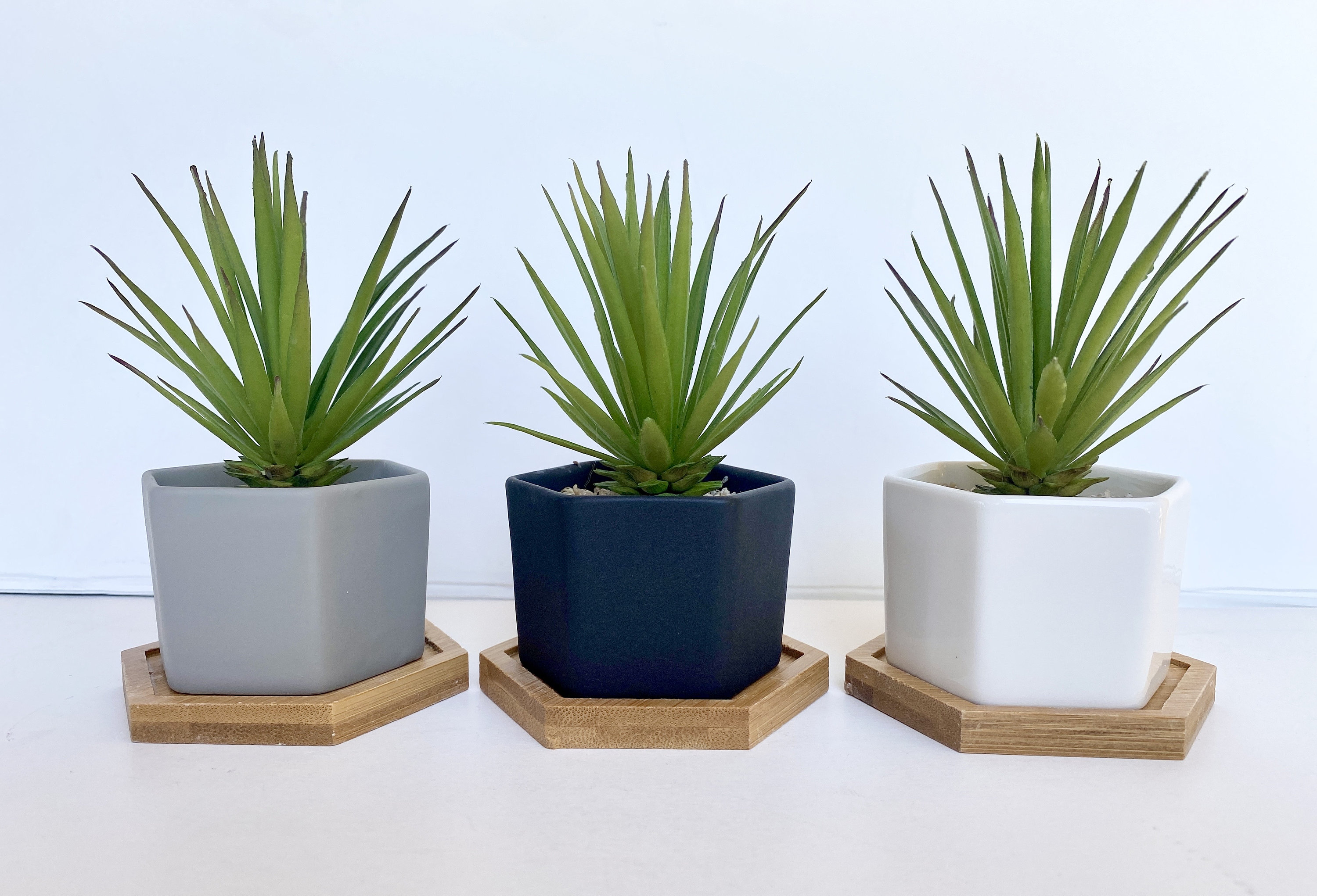 Small Artificial Succulent Plant in white, grey or black Hexagon Po...