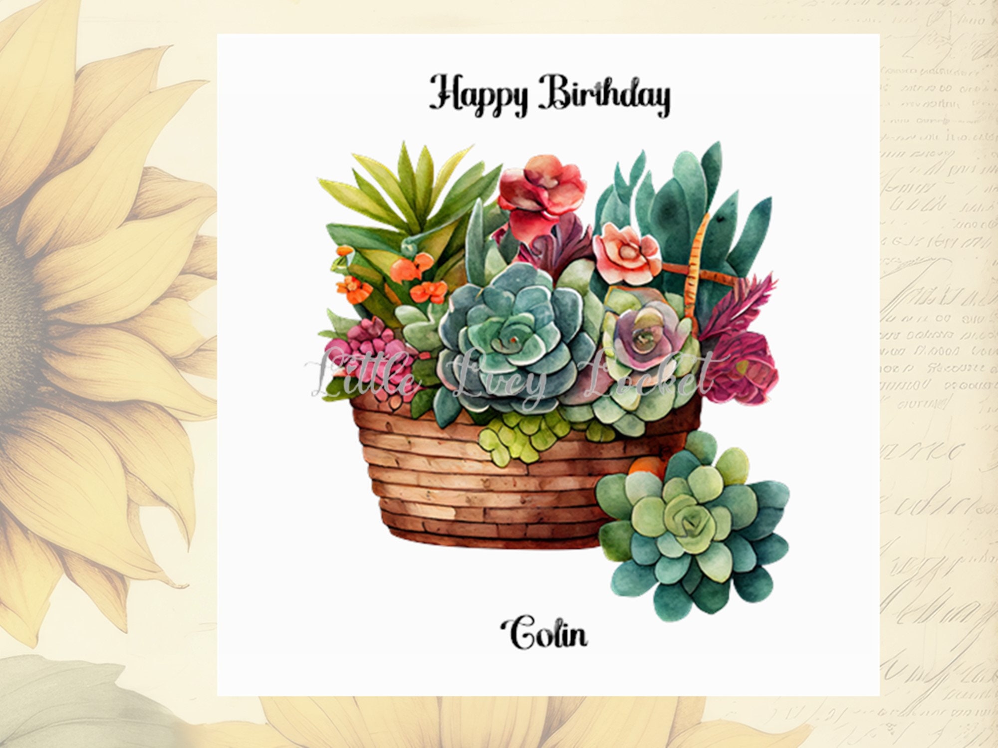 SUCCULENT Plants Birthday Card-PERSONALISED-Arrangement of Succulen...