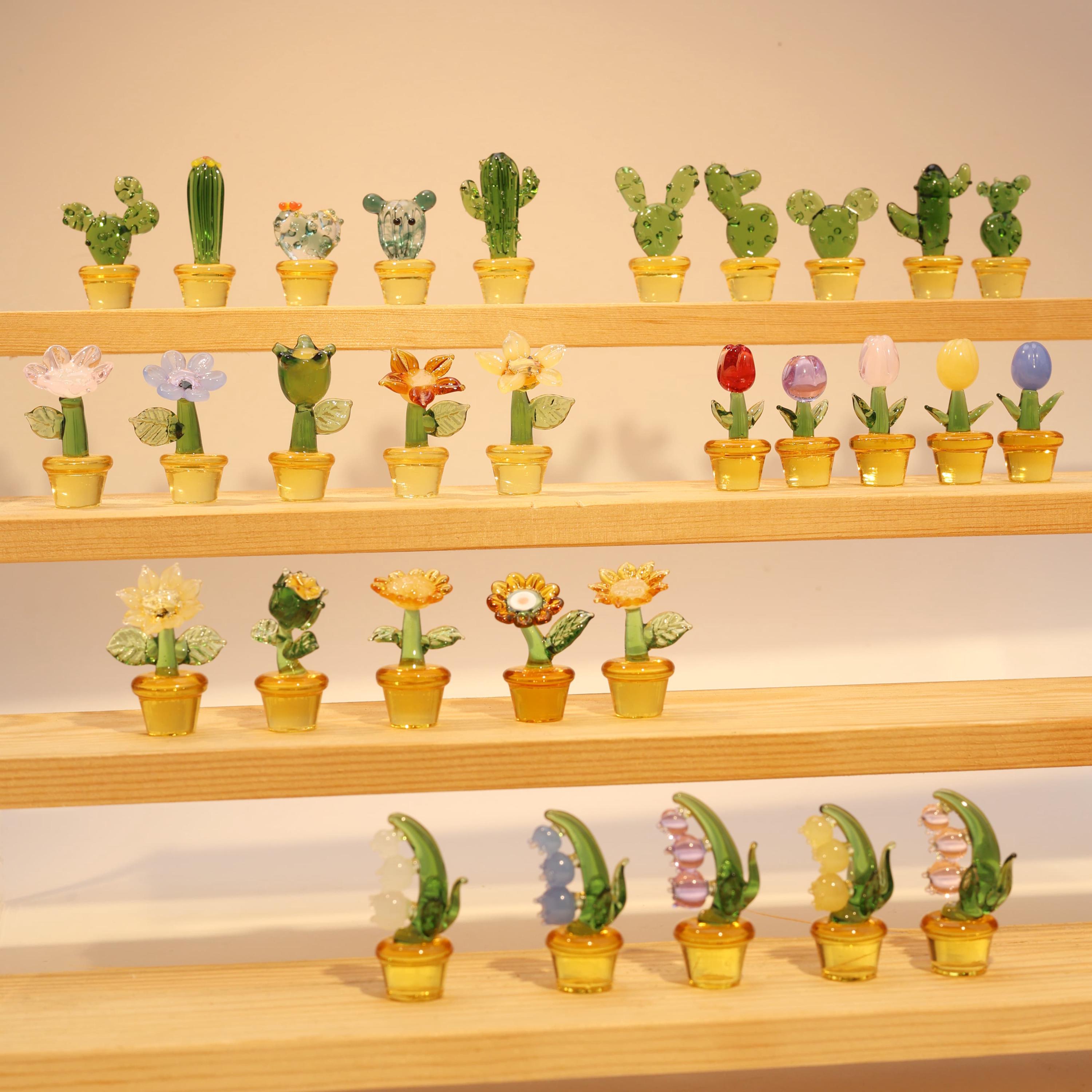 5pcs Set Handmade Blown Glass Cactus Succulent Sunflower Lily Tulip...