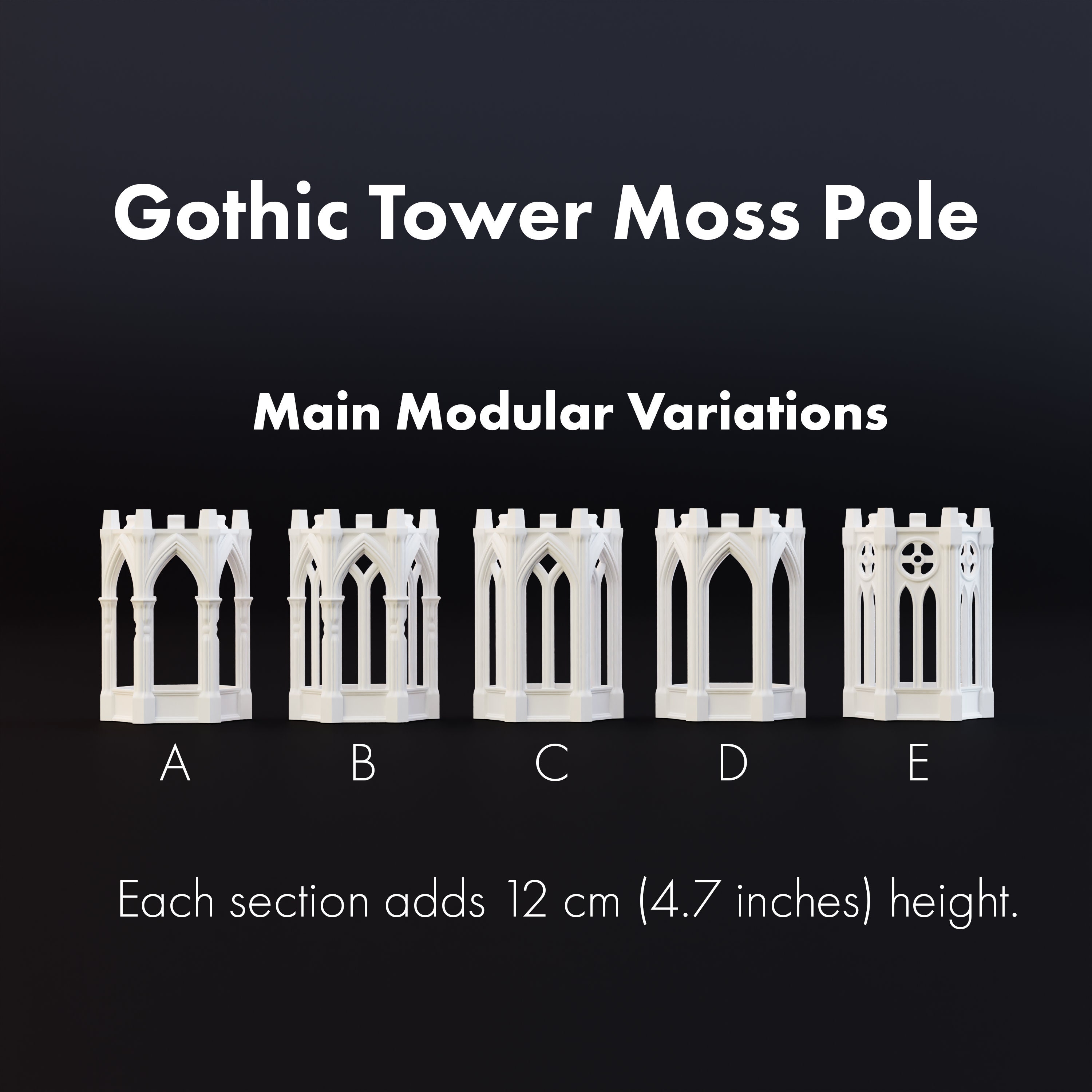 Gothic Tower Stackable Moss Pole, Plant Totem, 3D Printed Modular S...