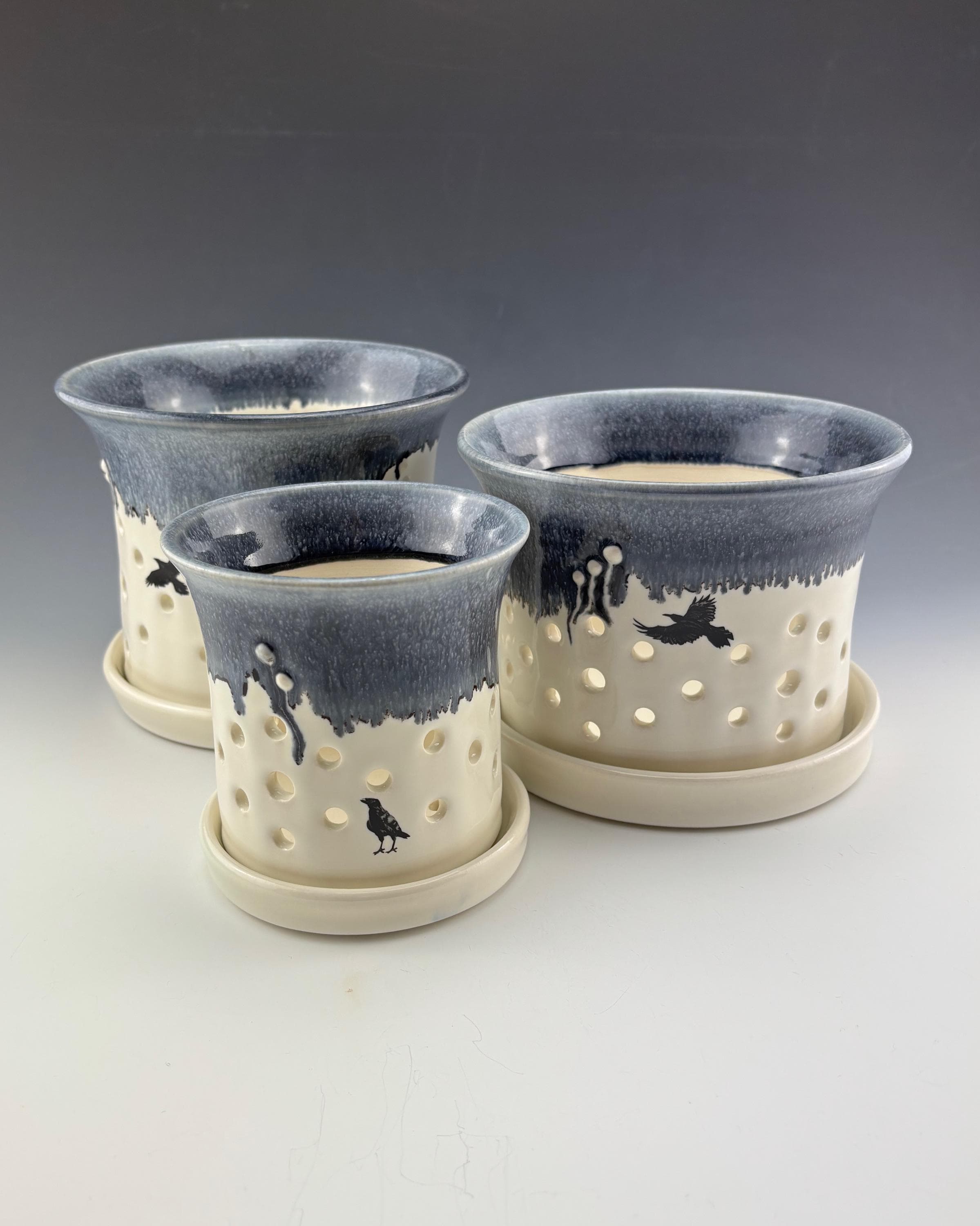 Orchid Pots in Grey Ice with Raven Decal, Please contact seller for...