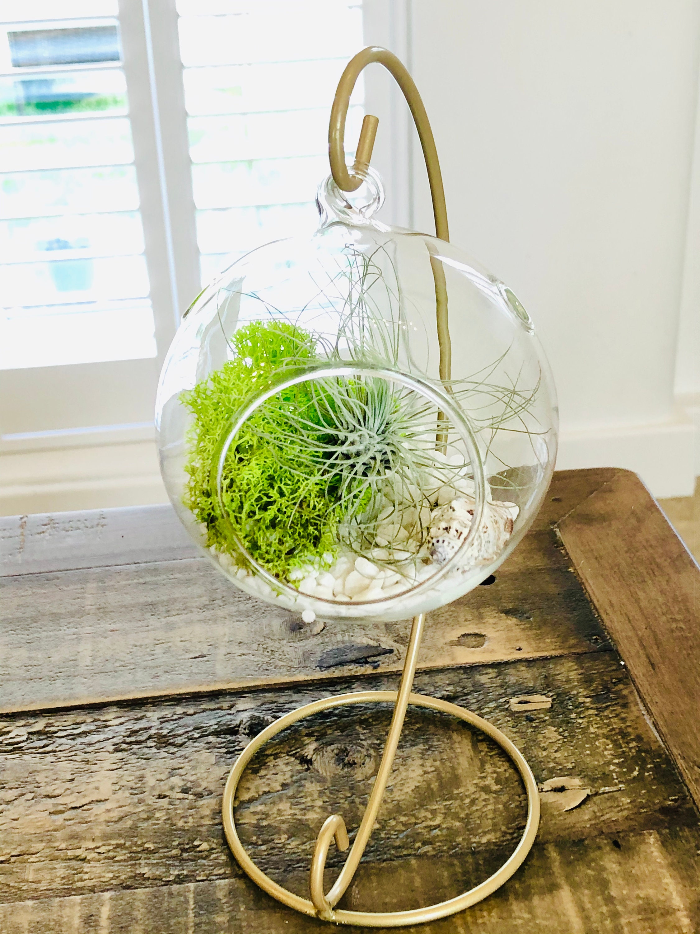DIY terrarium air plant kit, glass with a stand. Plant hanger. Glas...