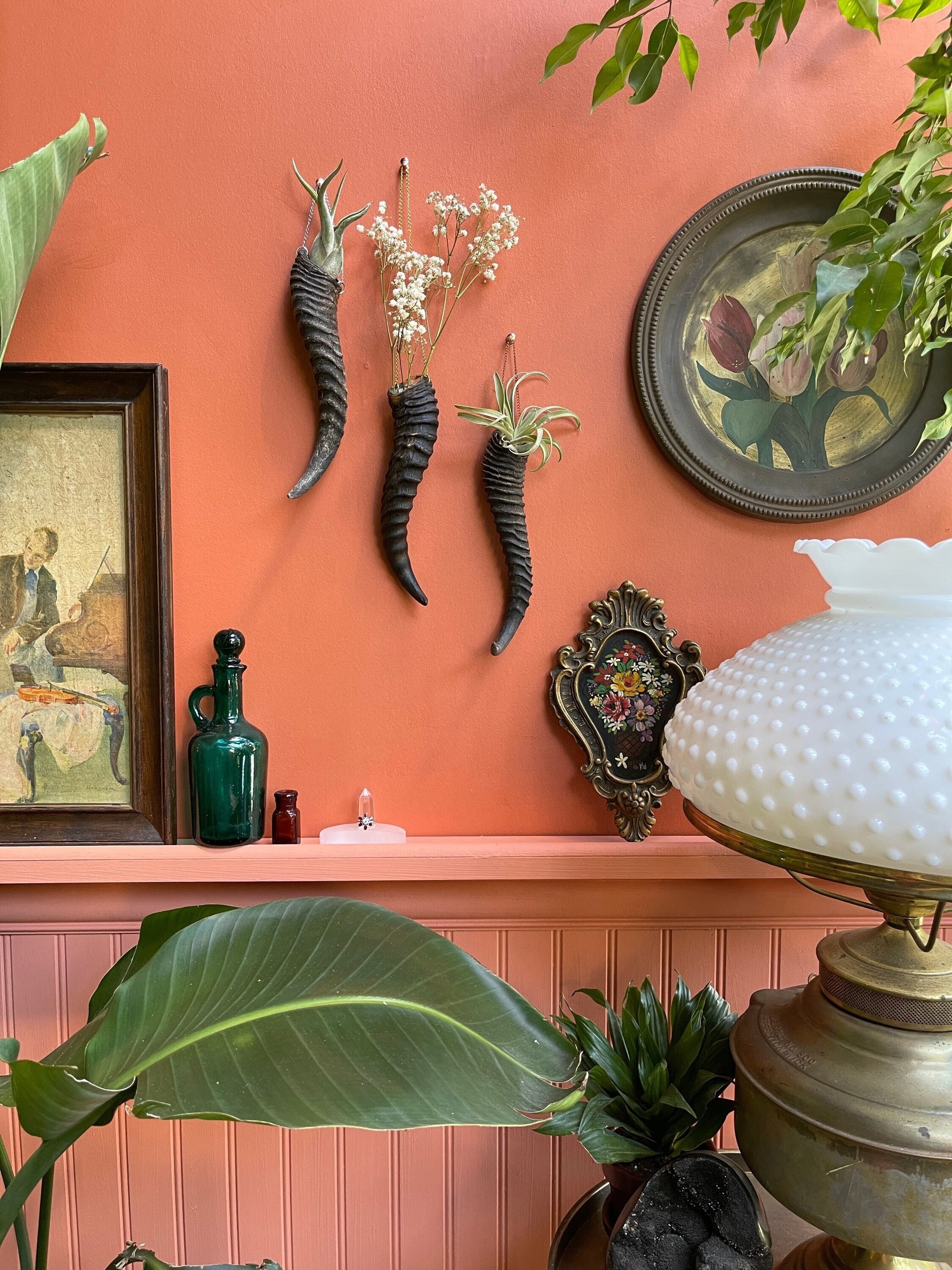 African springbok horns have the perfect size opening for holding air plants or dried flowers (or an...