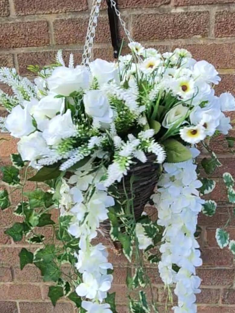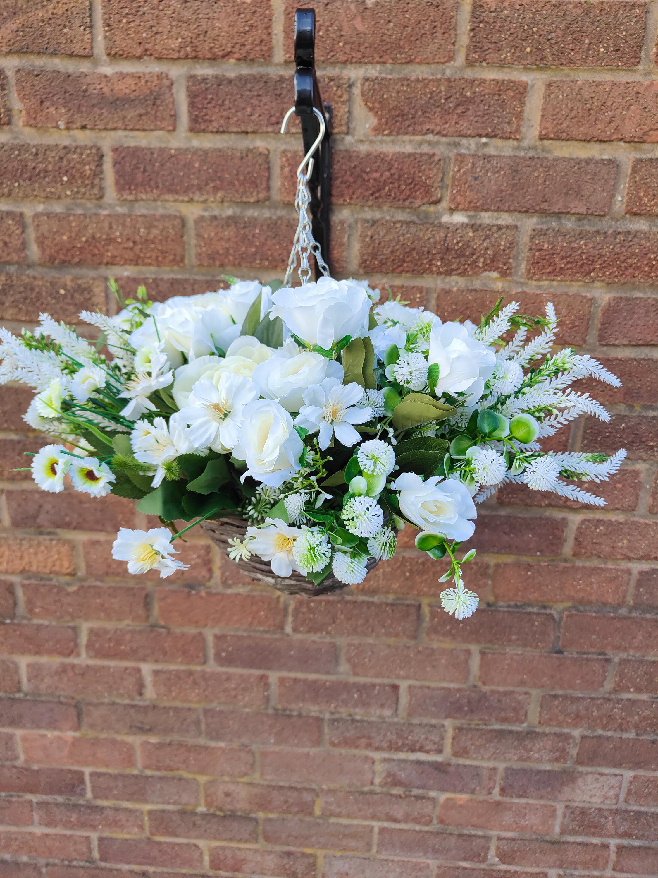 Artificial Hanging Basket, hanging basket - all white Spring and su...