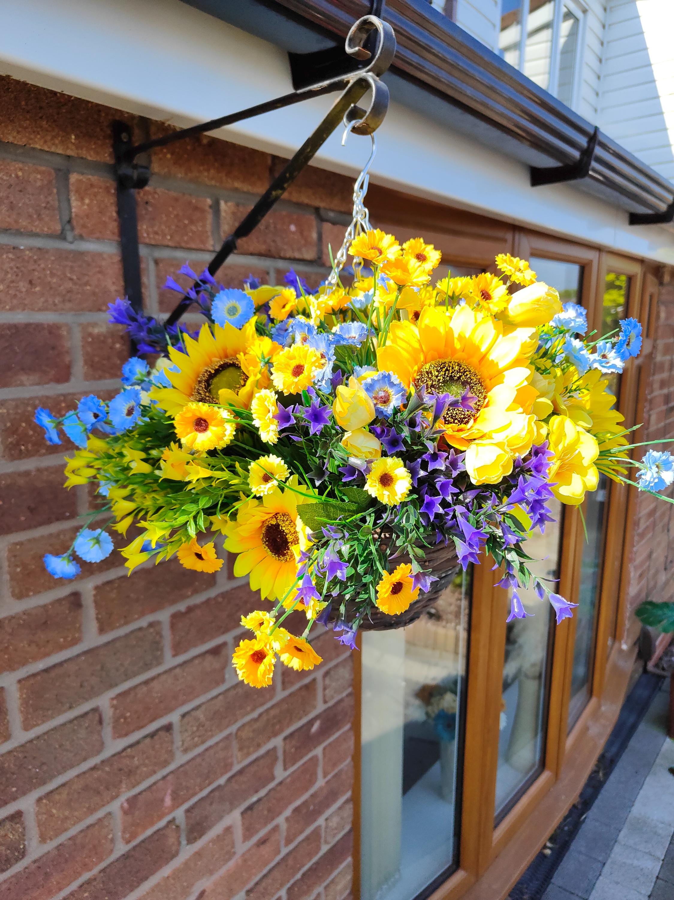 Blue Purple Yellow Sunflower Artificial Flower Hanging Basket Faux ...