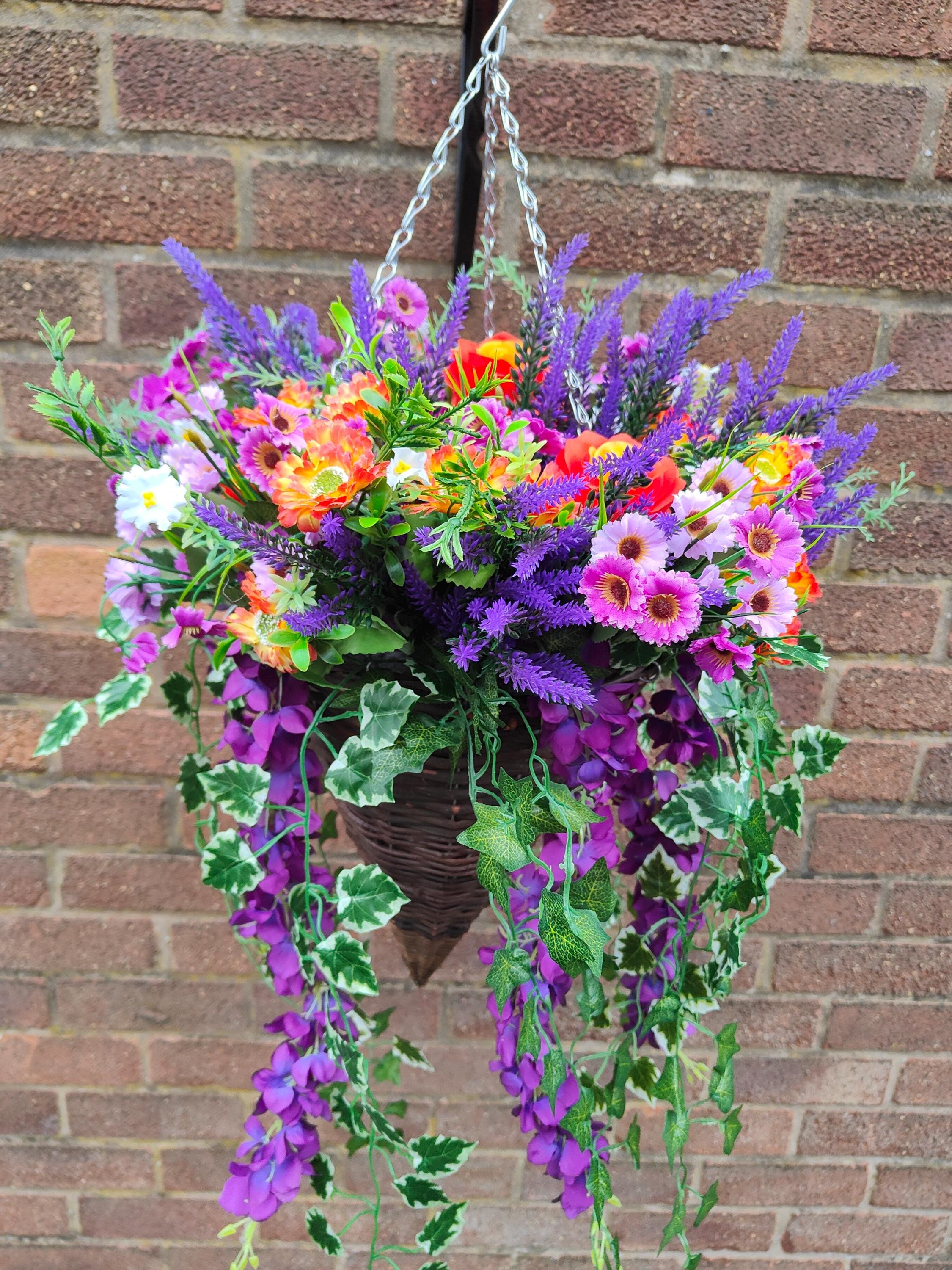 Purple Orange Artificial Flower Hanging Basket Faux Flowers basket ...