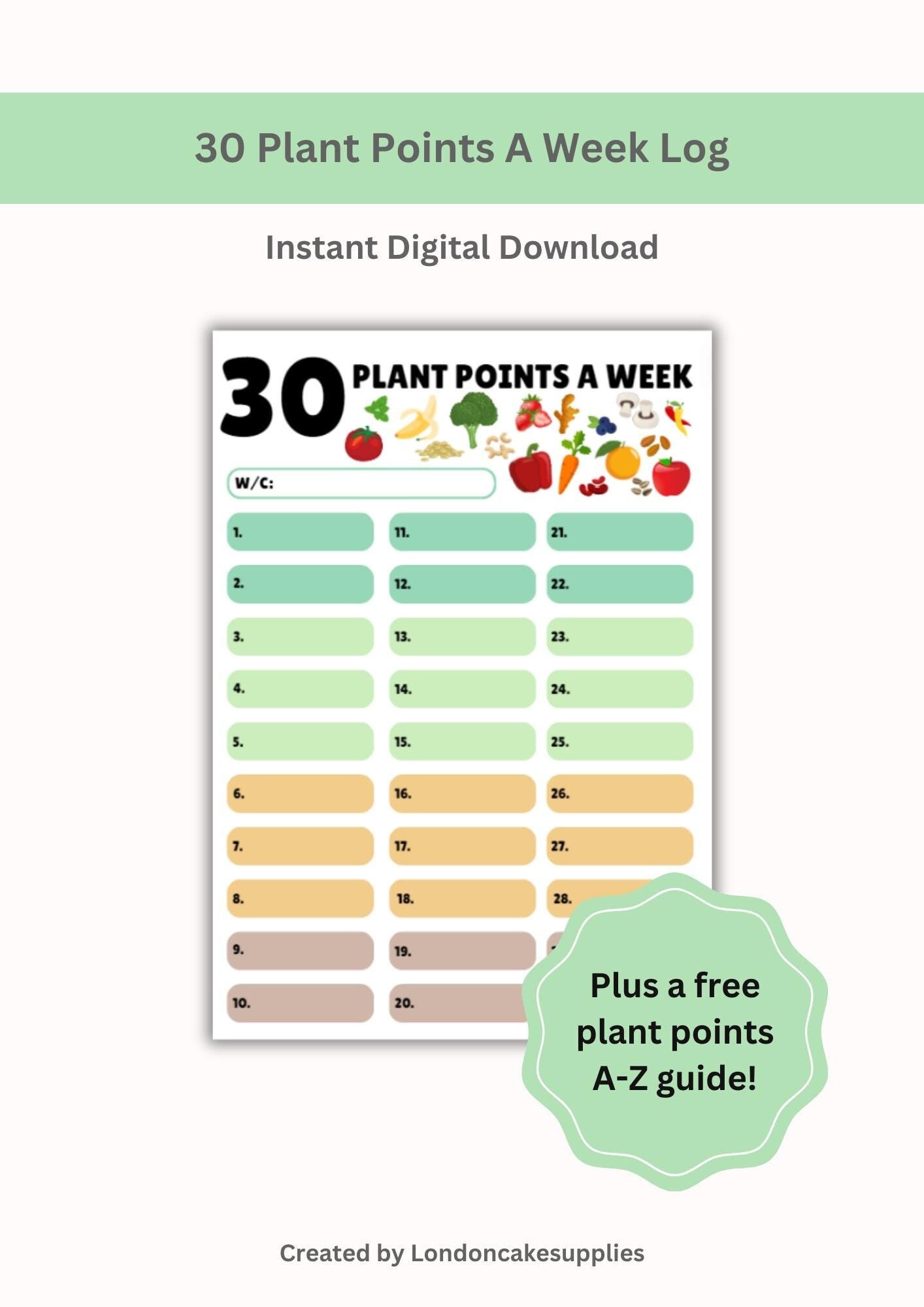 30 Plant Points A Week | Food Weekly Tracker | Digital Download | F...