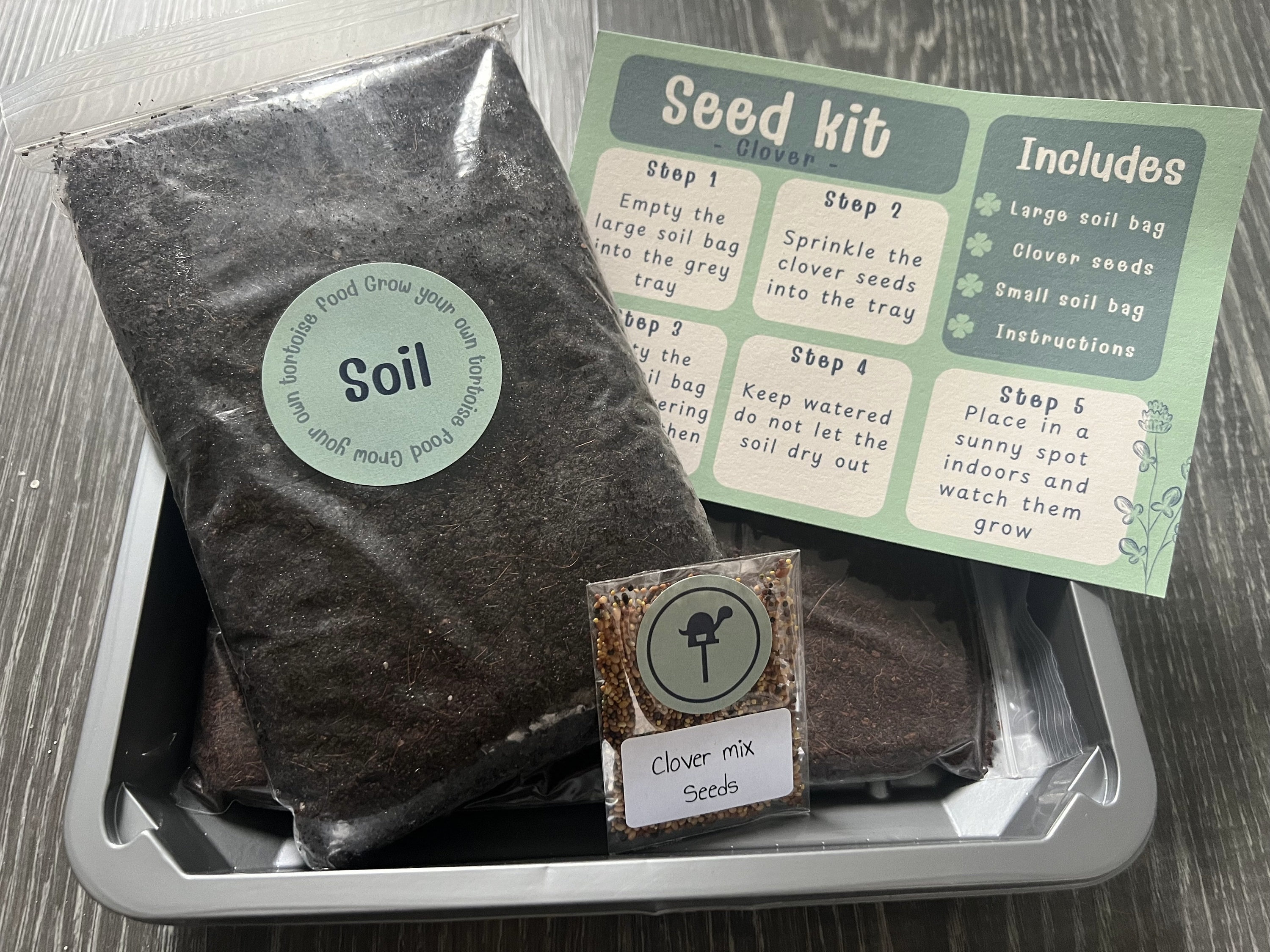 Introducing our Grow Your Own Tortoise Food kit, a delightful mix of clover / fast grow / cat grass....