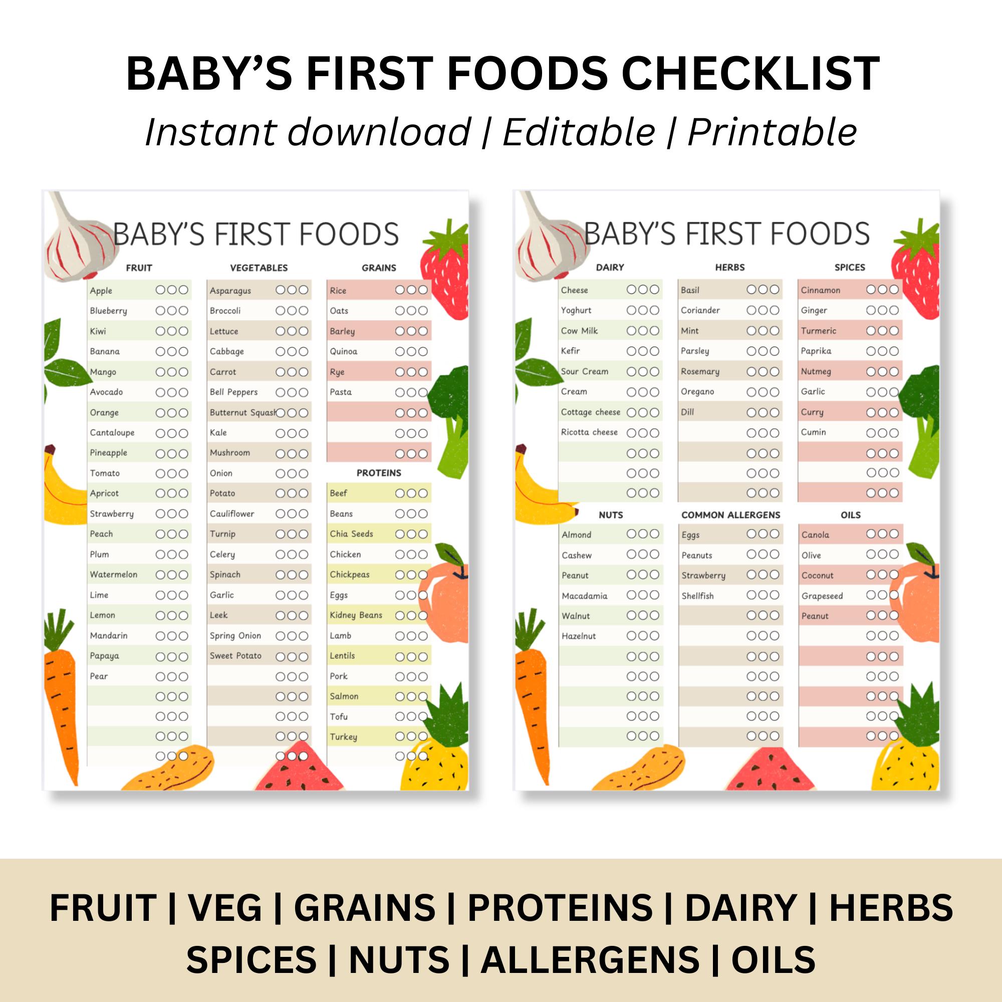 Baby Food Introduction Checklist & Weekly Meal Planner | Baby F...