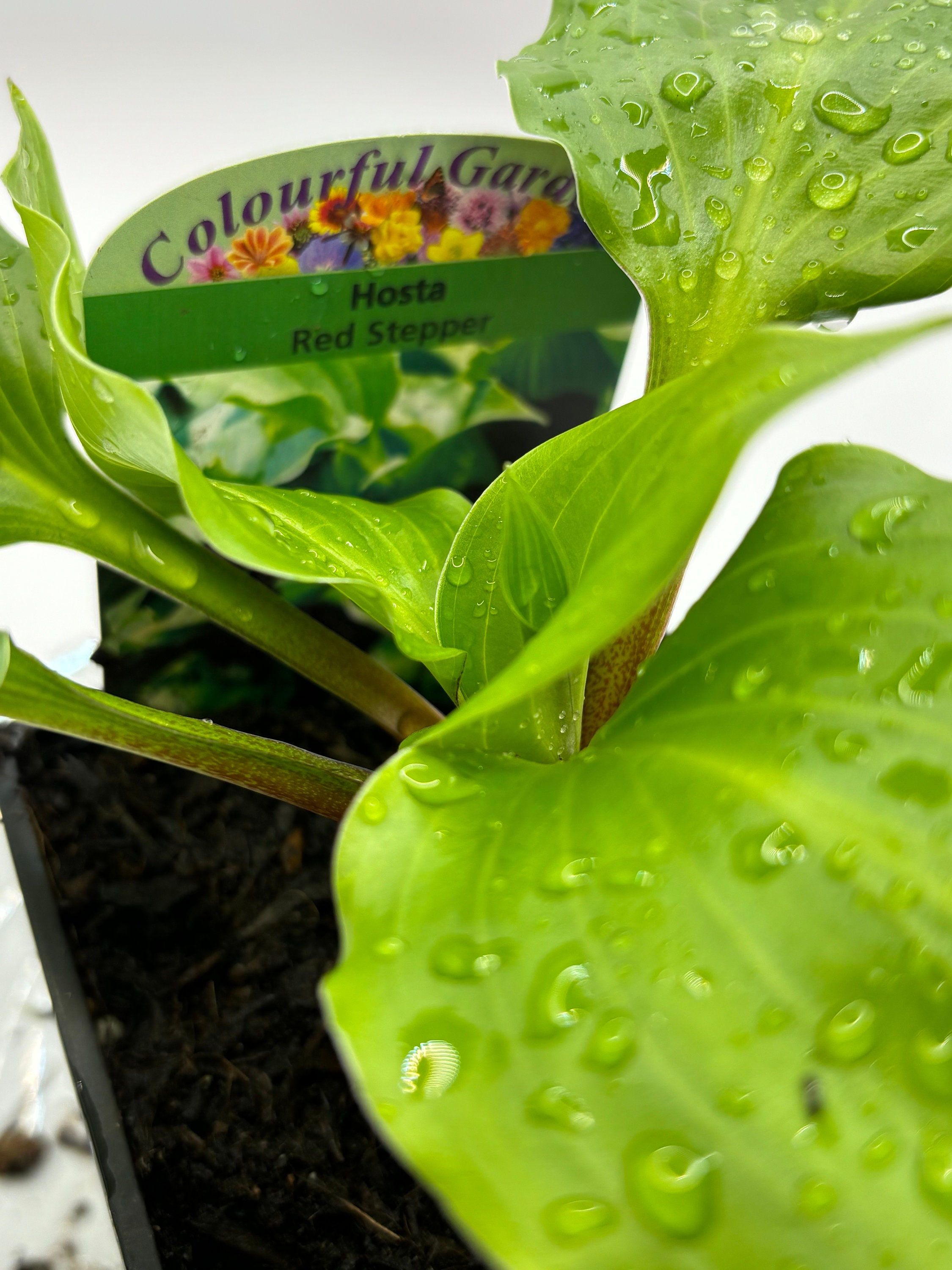 Hosta 'Red Stepper' Hosta 'Red Stepper' is a medium, clump-forming deciduous perennial with glossy d...