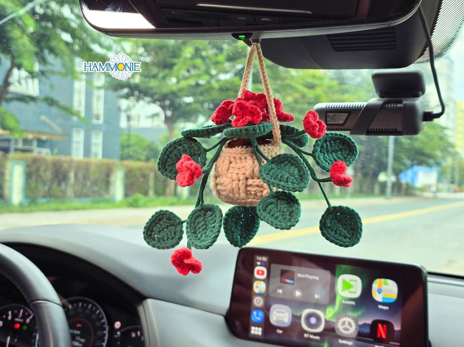Crochet Hanging Plant Basket: Car Charm Rearview Mirror Decor