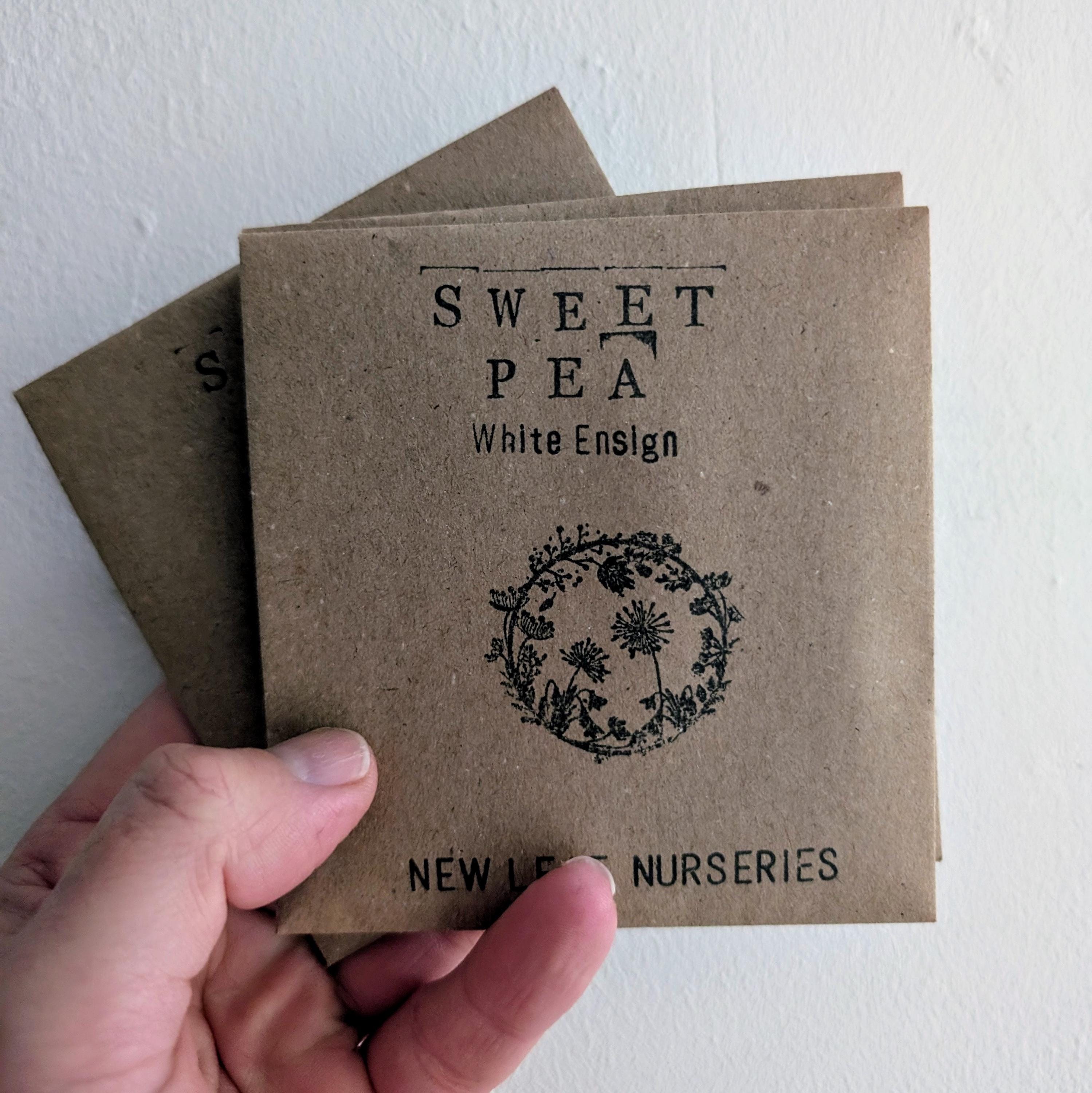 Sweet Pea 'White Ensign' Seeds in a Hand-Stamped Packet - Packs of ...