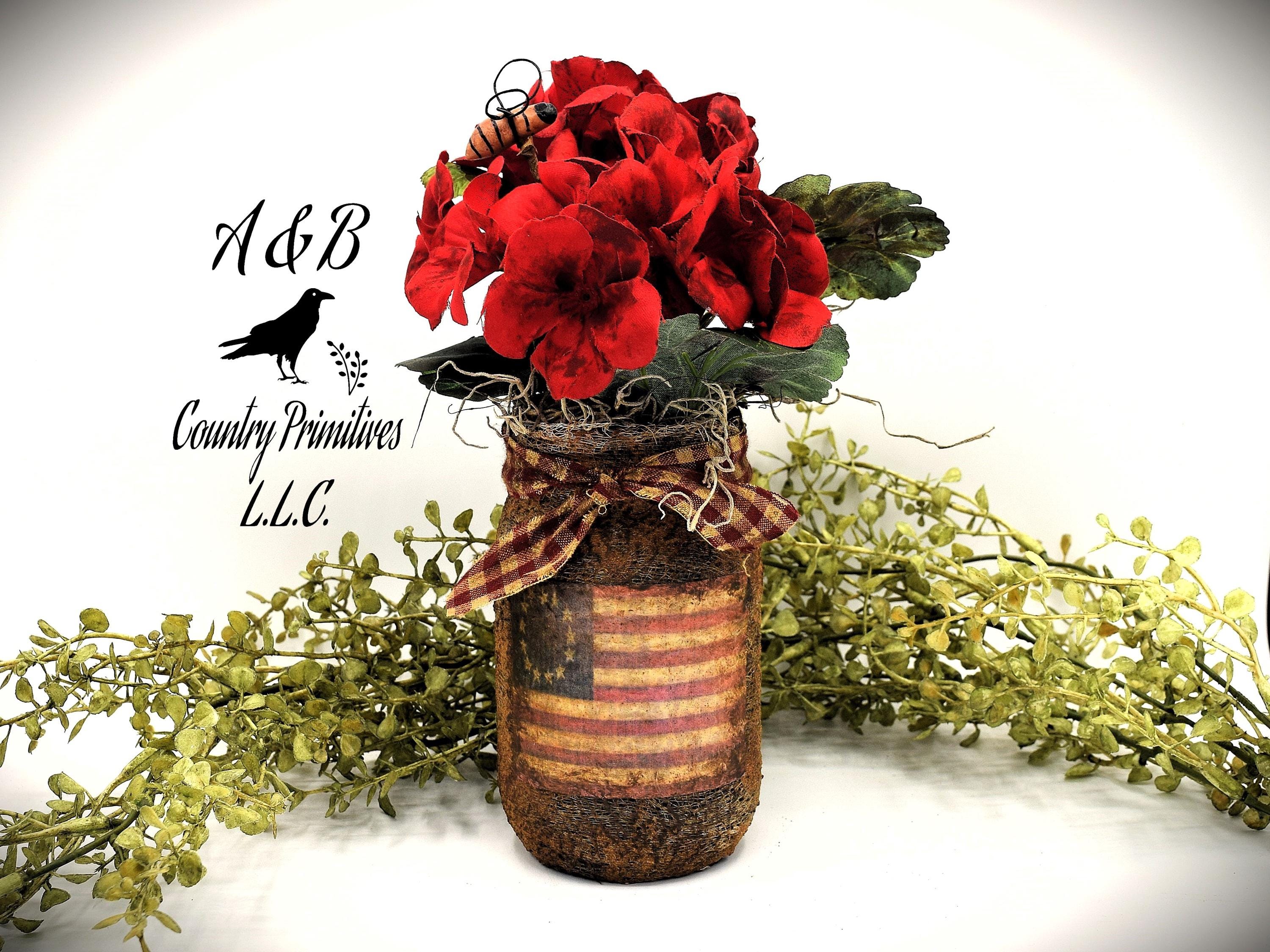 Betsy Ross Flag Mason Jar Floral Arrangement: Primitive Americana S...