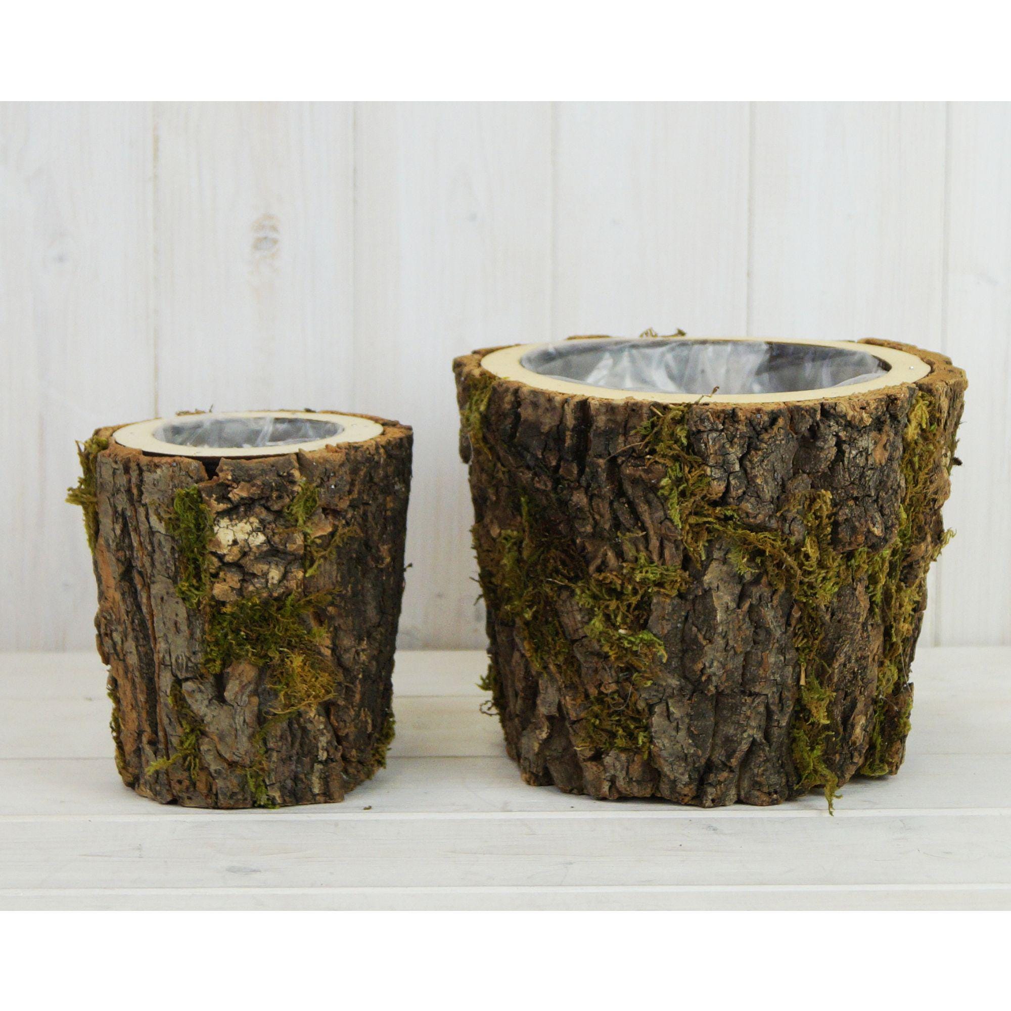 Set of 2 natural mossed bark wooden pots Attractive rustic wooden pots with attached lining Perfect ...