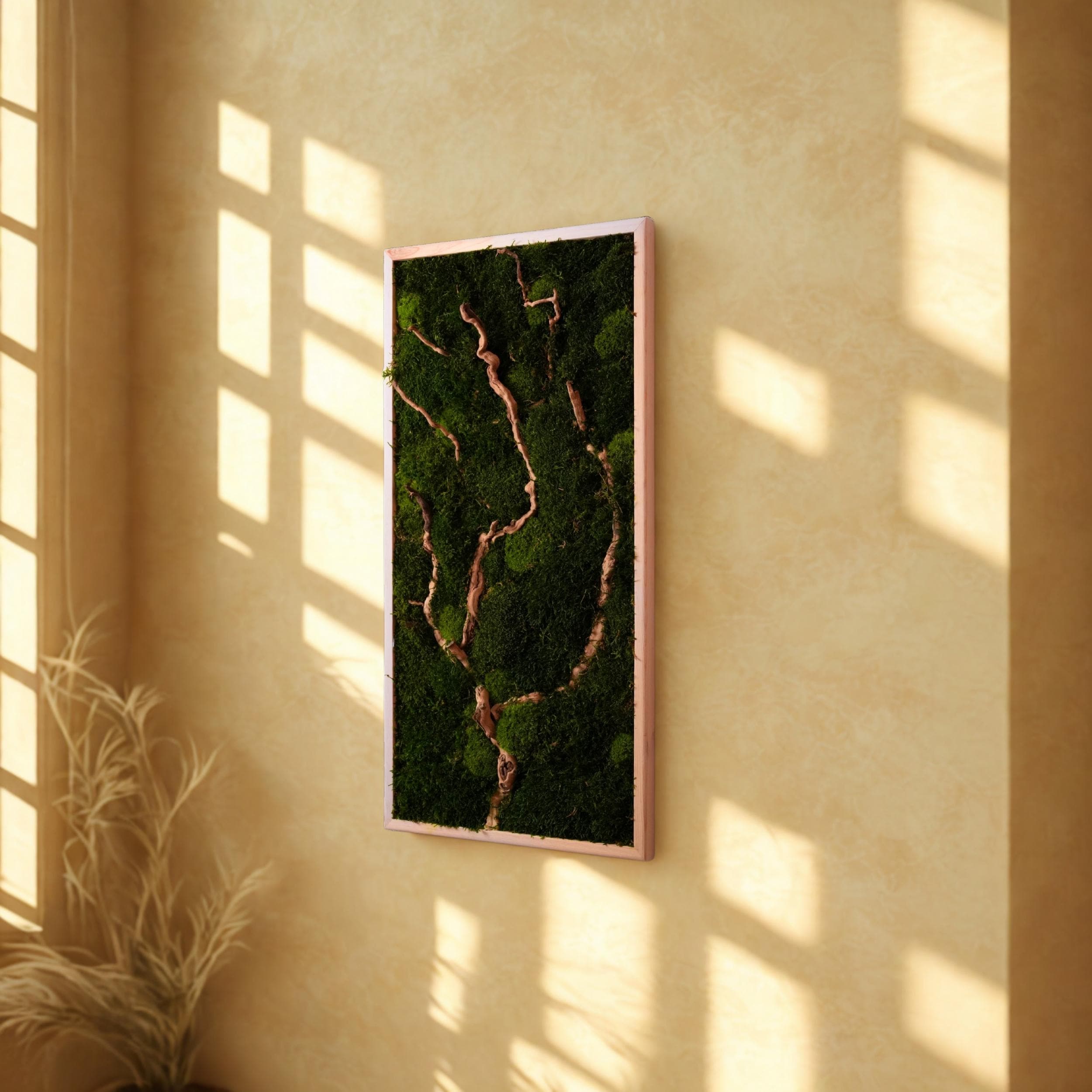 Bonsai Moss Wall Decor, Preserved Stabilized Bonsai Moss Art, Woode...