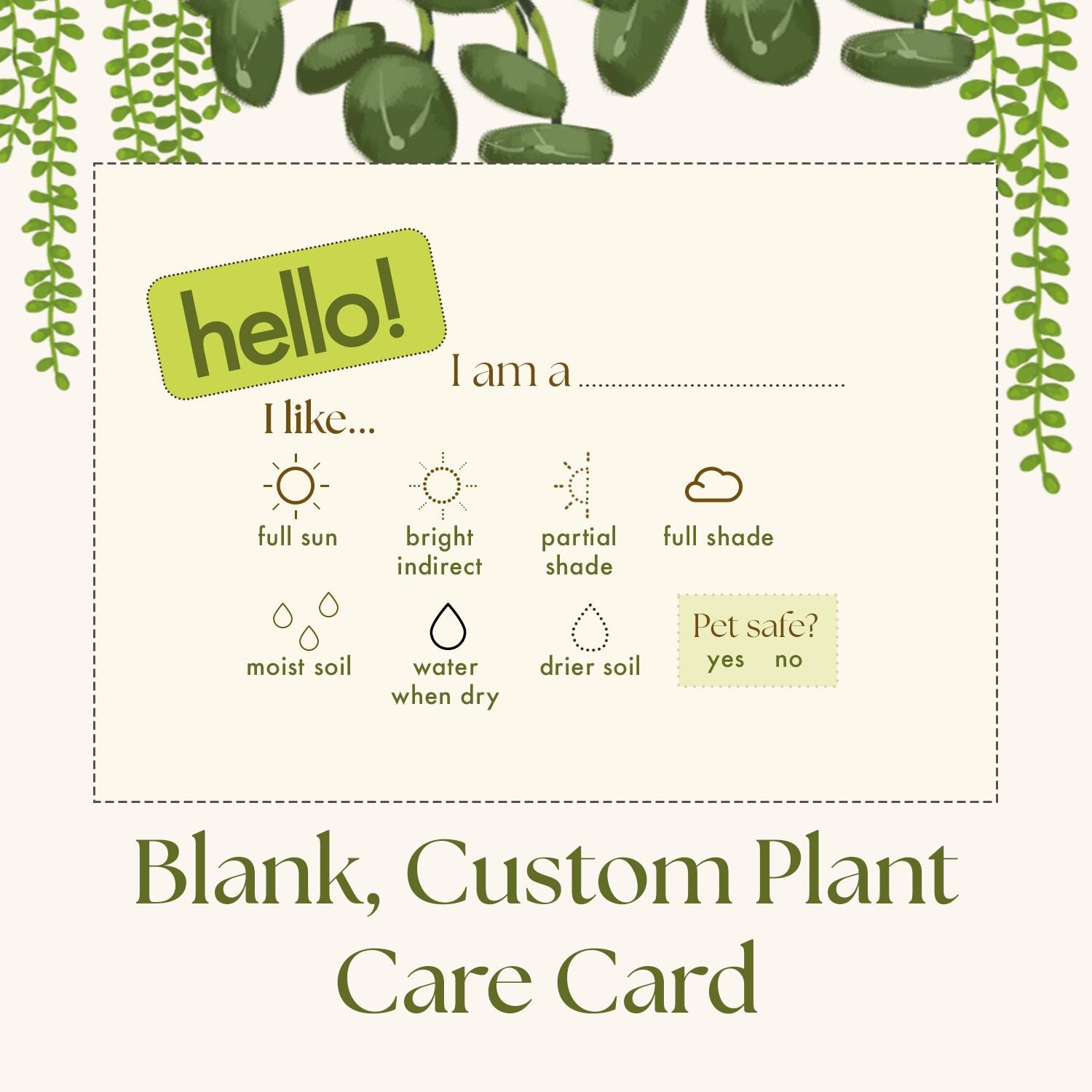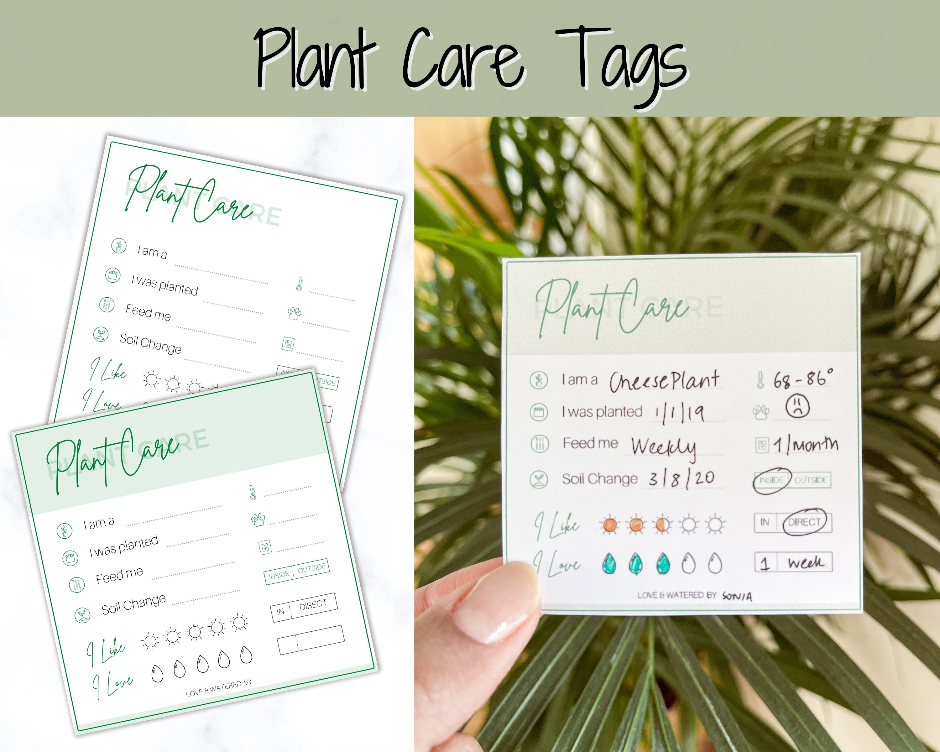 PLANT CARE Tags, Printable Plant Care Instructions Card, DIGITAL Ca...