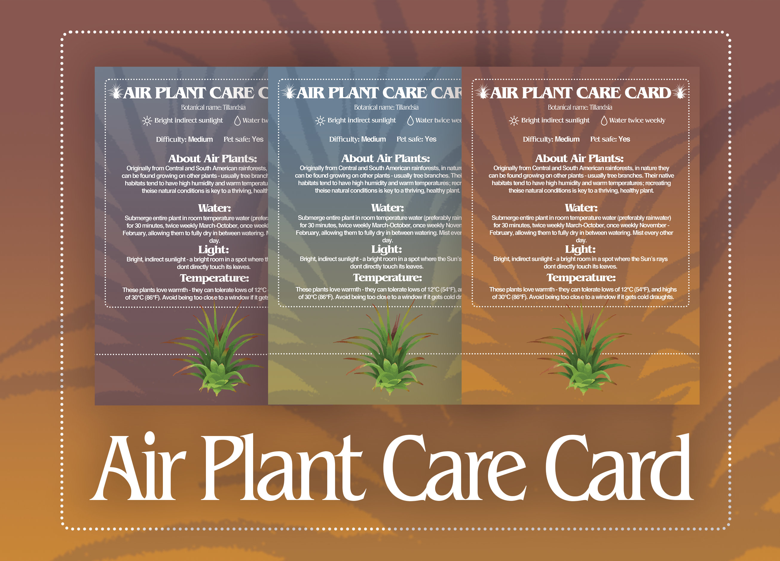 Air Plant Care Card, Digital Air Plant Care Label, Printable Housep...
