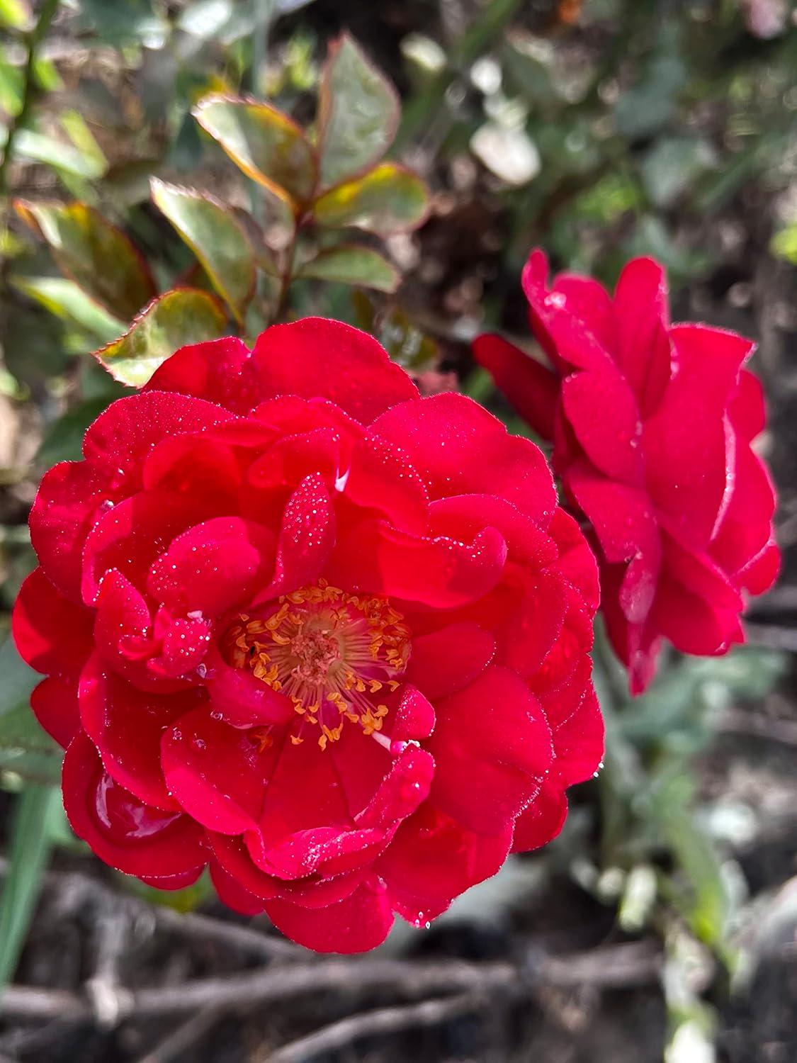 A lovely rose plant that has velvet red double blooms. They have a strong fragrance and a dark green...