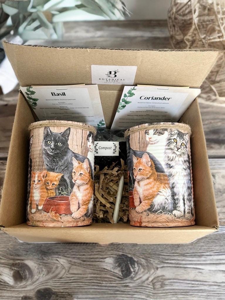 Cat Kitten Herb Garden Gift Set: Eco-Friendly Planter Kit