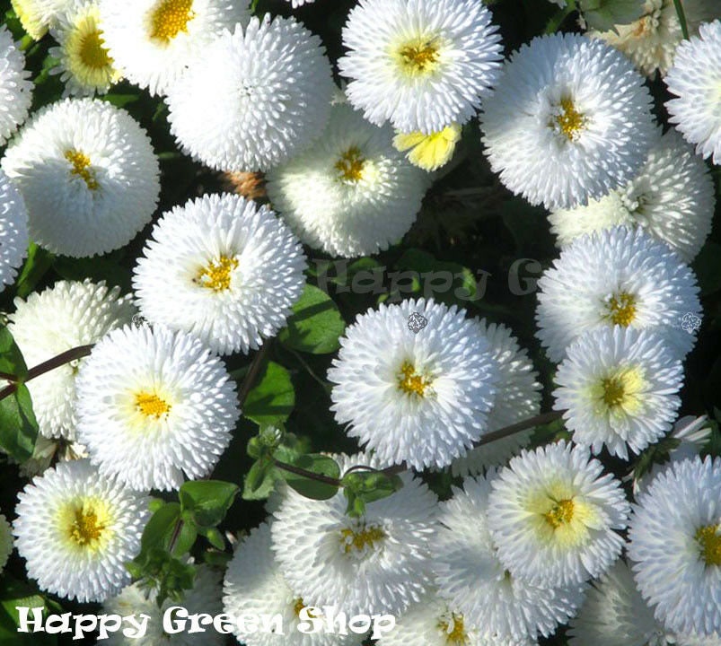 DAISY ENGLISH - 500 seeds - Pomponette White - Bellis Perennis - Re...