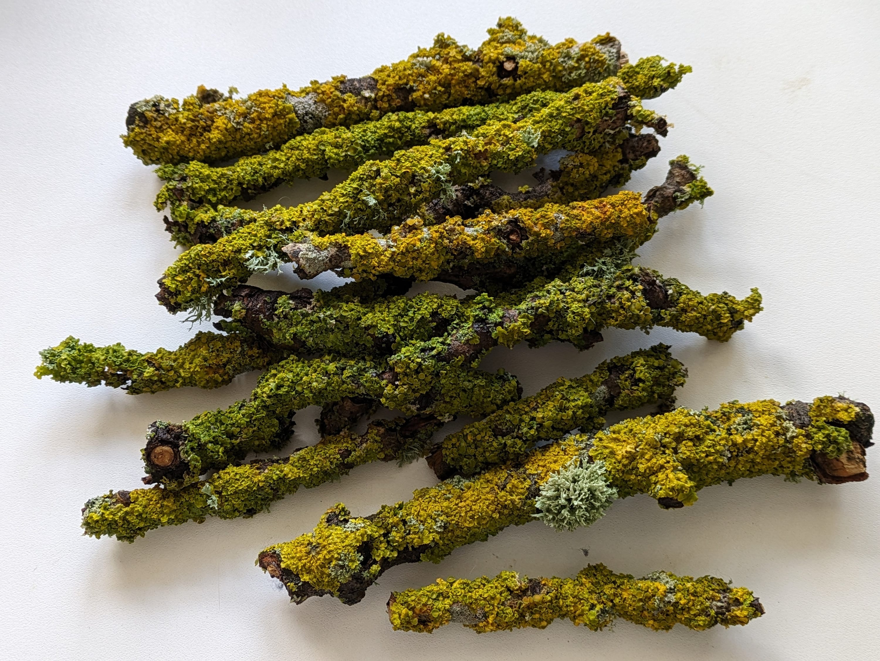 You will receive 12 short twigs covered with yellow lichen moss approx. 10-20 cm long. These twigs c...