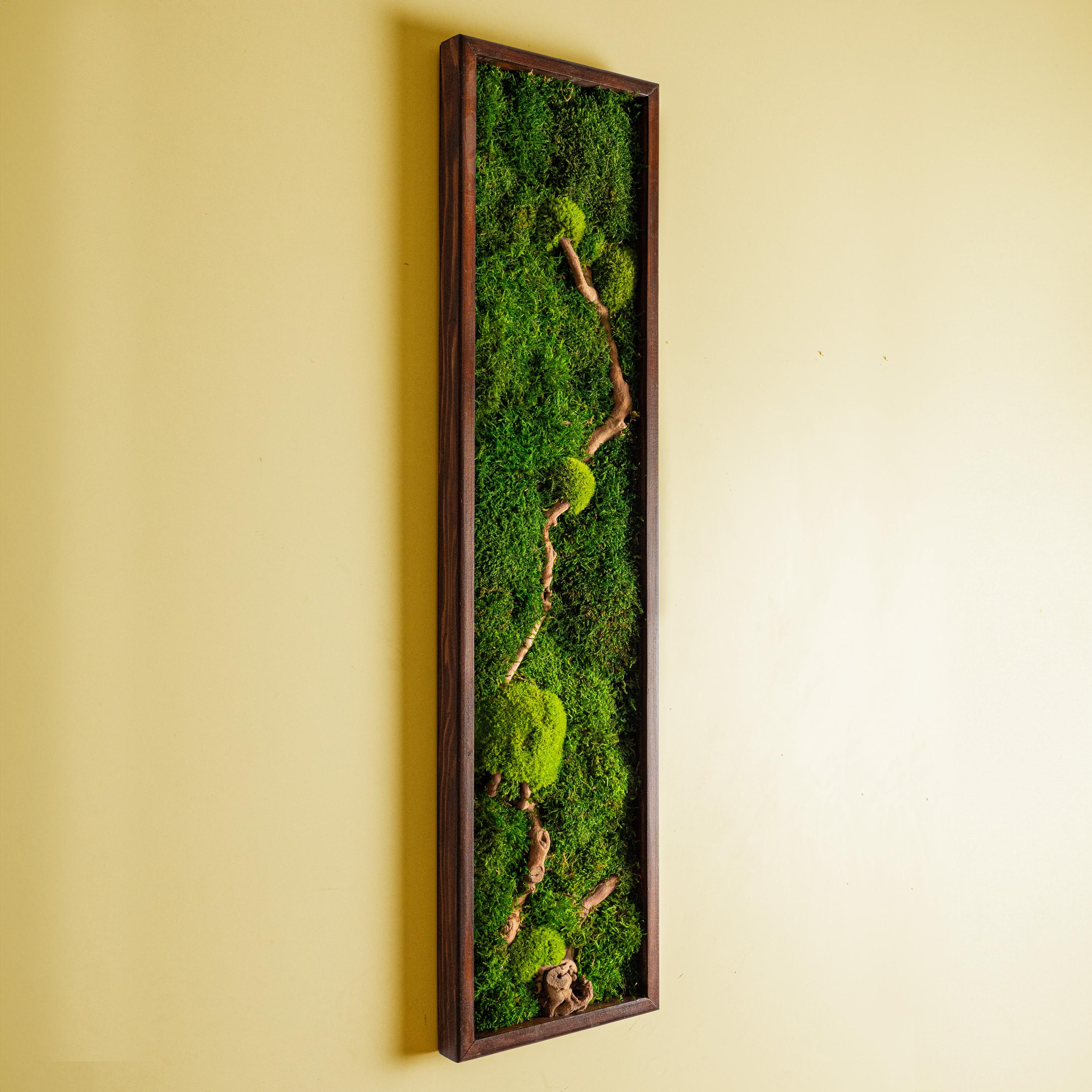Preserved Stabilized Moss and Wood Wall Art, Vertical Wooden Frame ...