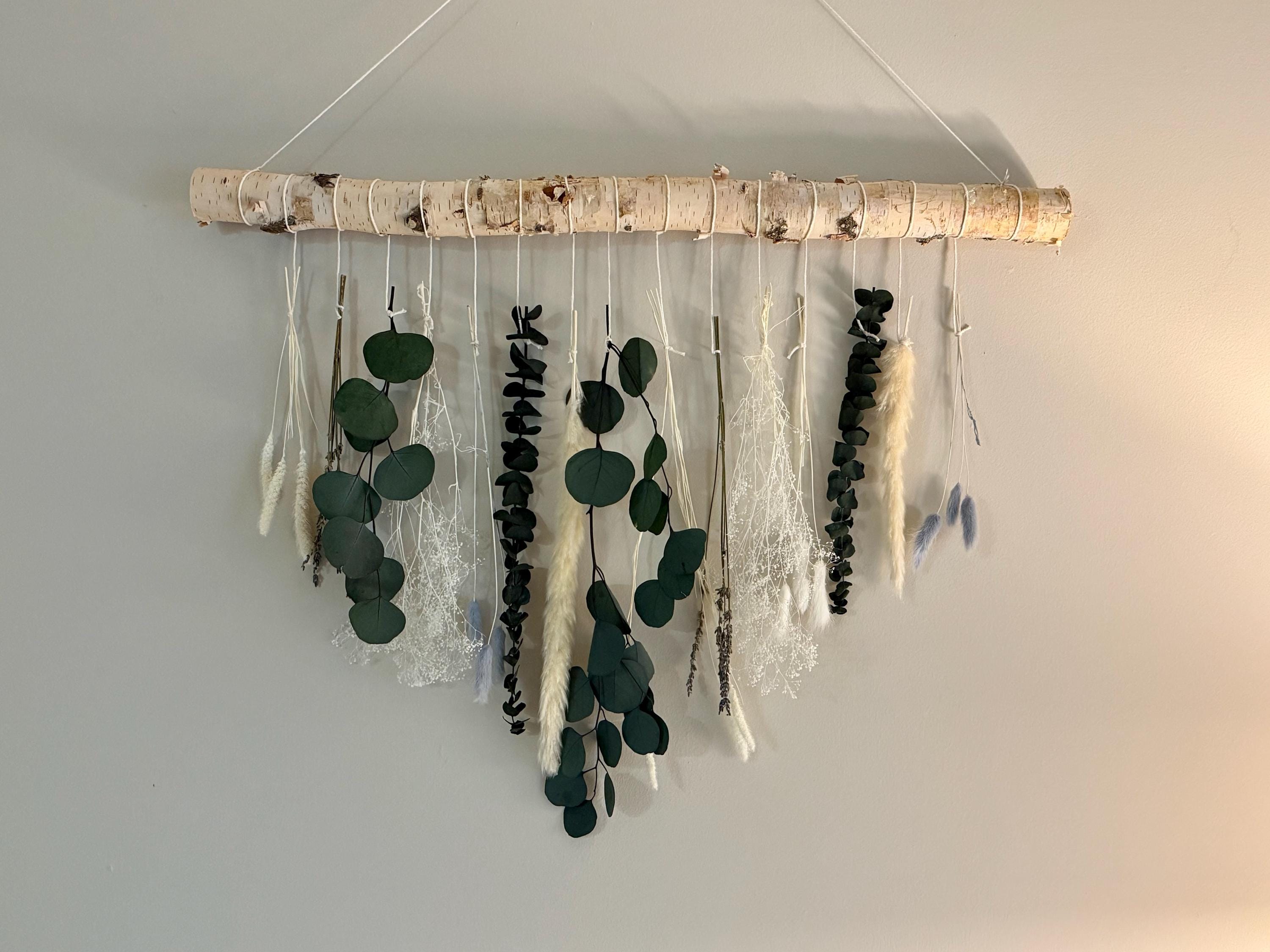 Dried flower wall decor, eucalyptus, lavender, white birch, wall ha...