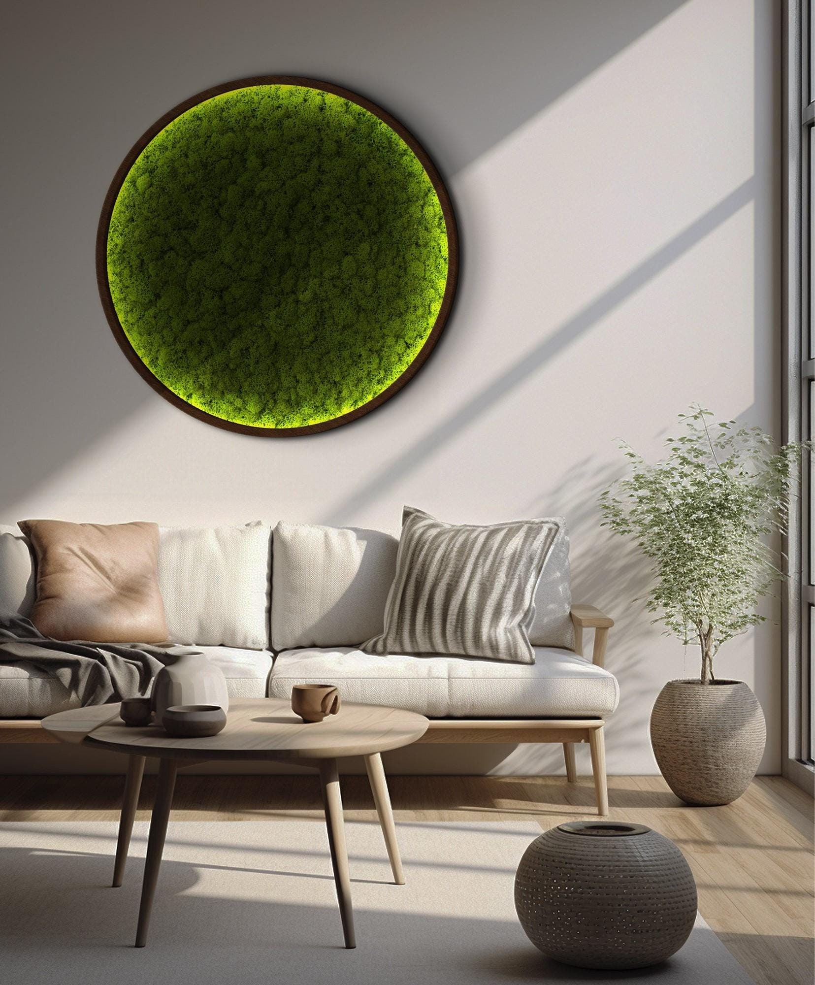 Oversized moss wall art, Preserved moss wall decor with led, Natura...
