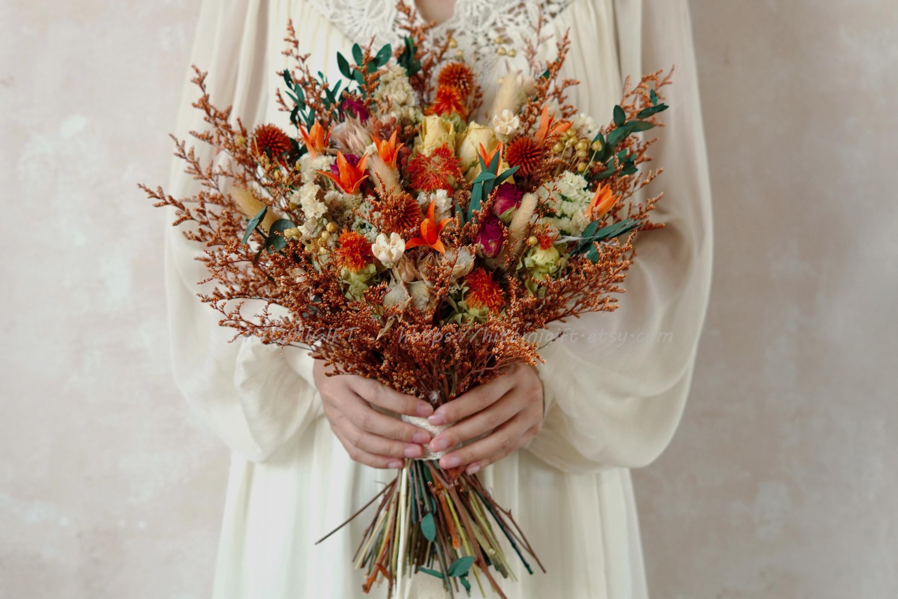 Rust Bridal Bouquet,Burnt orange Wedding Bouquet,Bridal Bouquet,Bridesmaid Bouquet,Dried Flower Bouq...