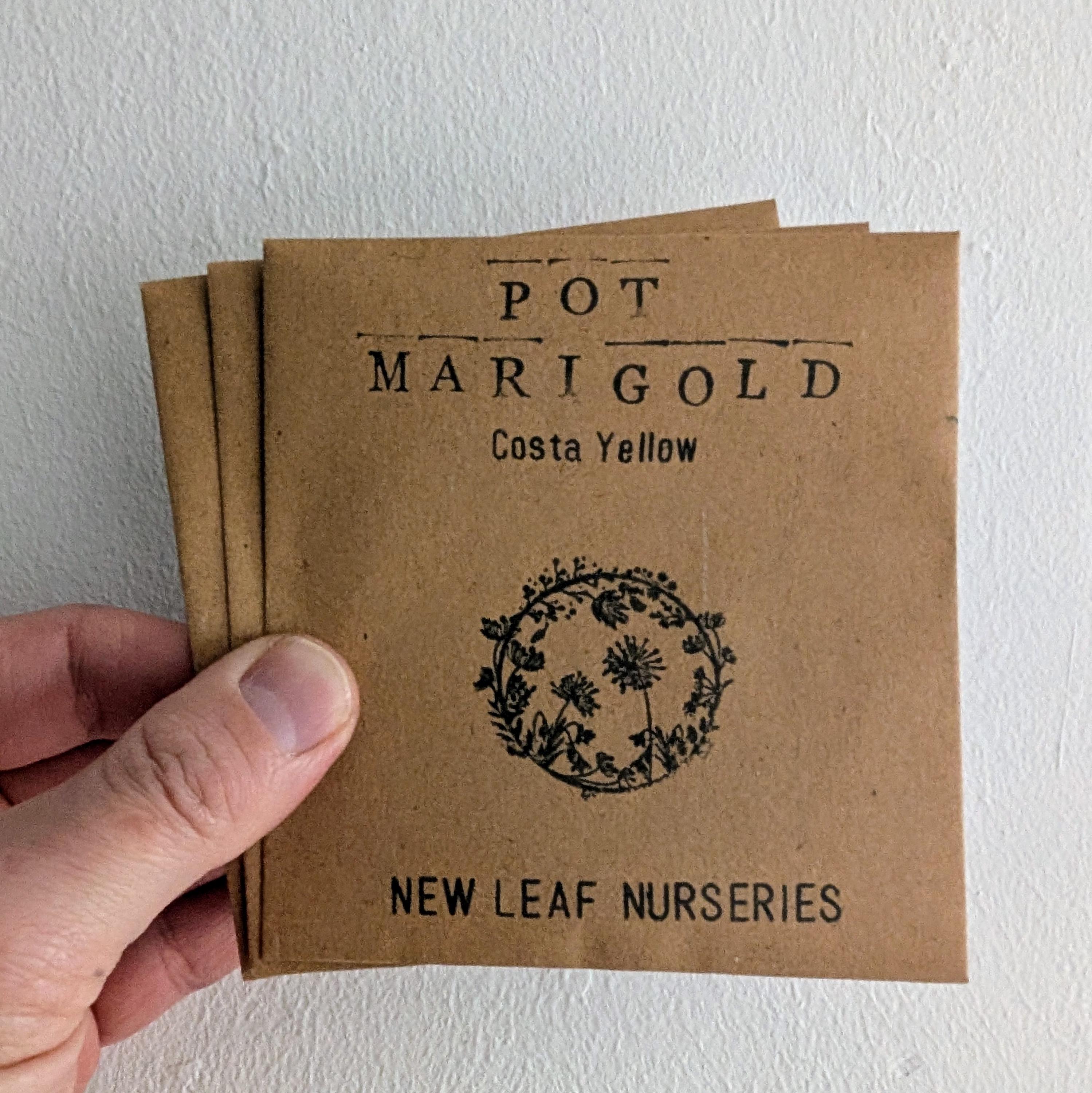 Pot Marigold 'Costa Yellow' (Calendula) Seeds in a Hand-Stamped Pac...