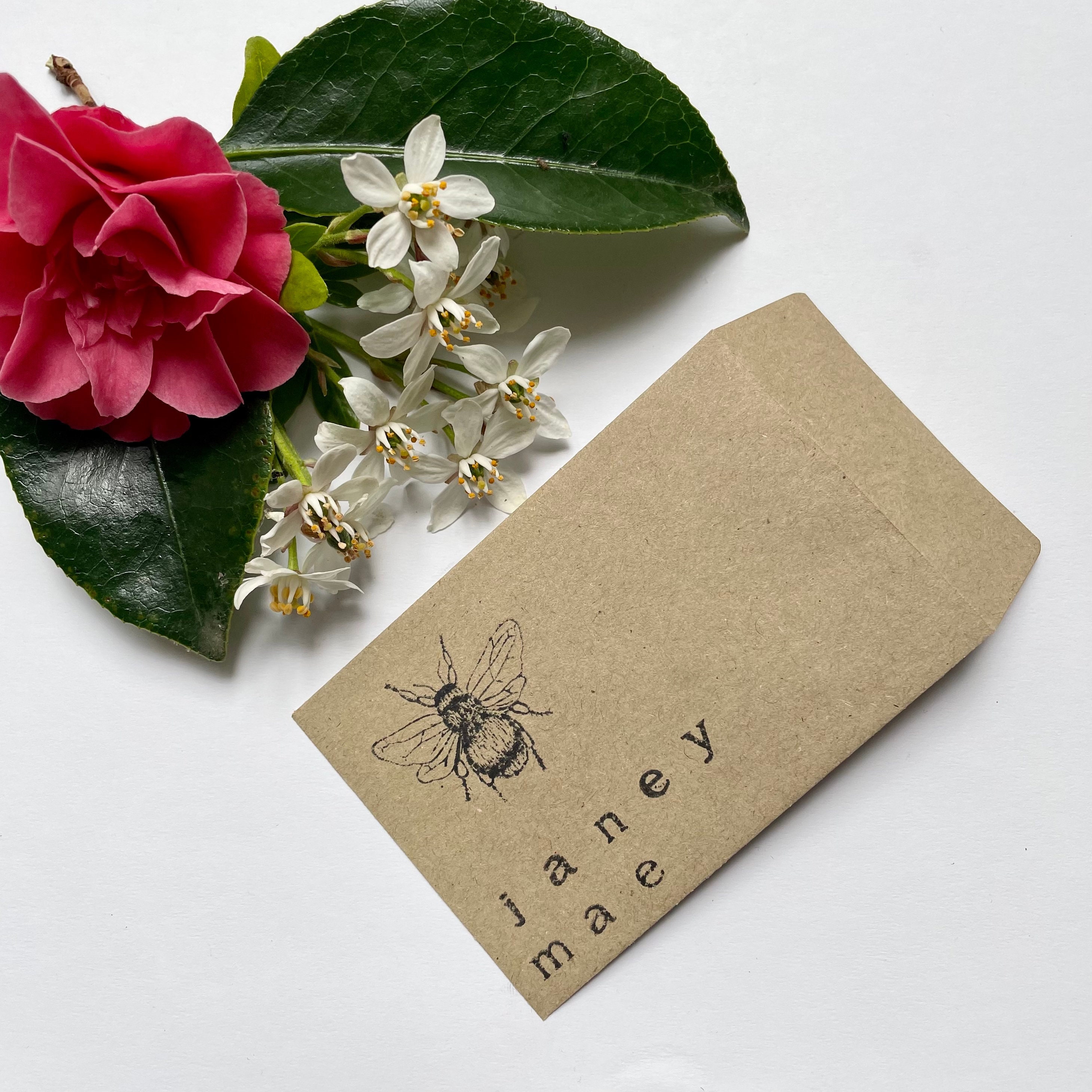 Wild flower seed envelopes to save the bees! Each envelope is hand stamped. You can personalise with...