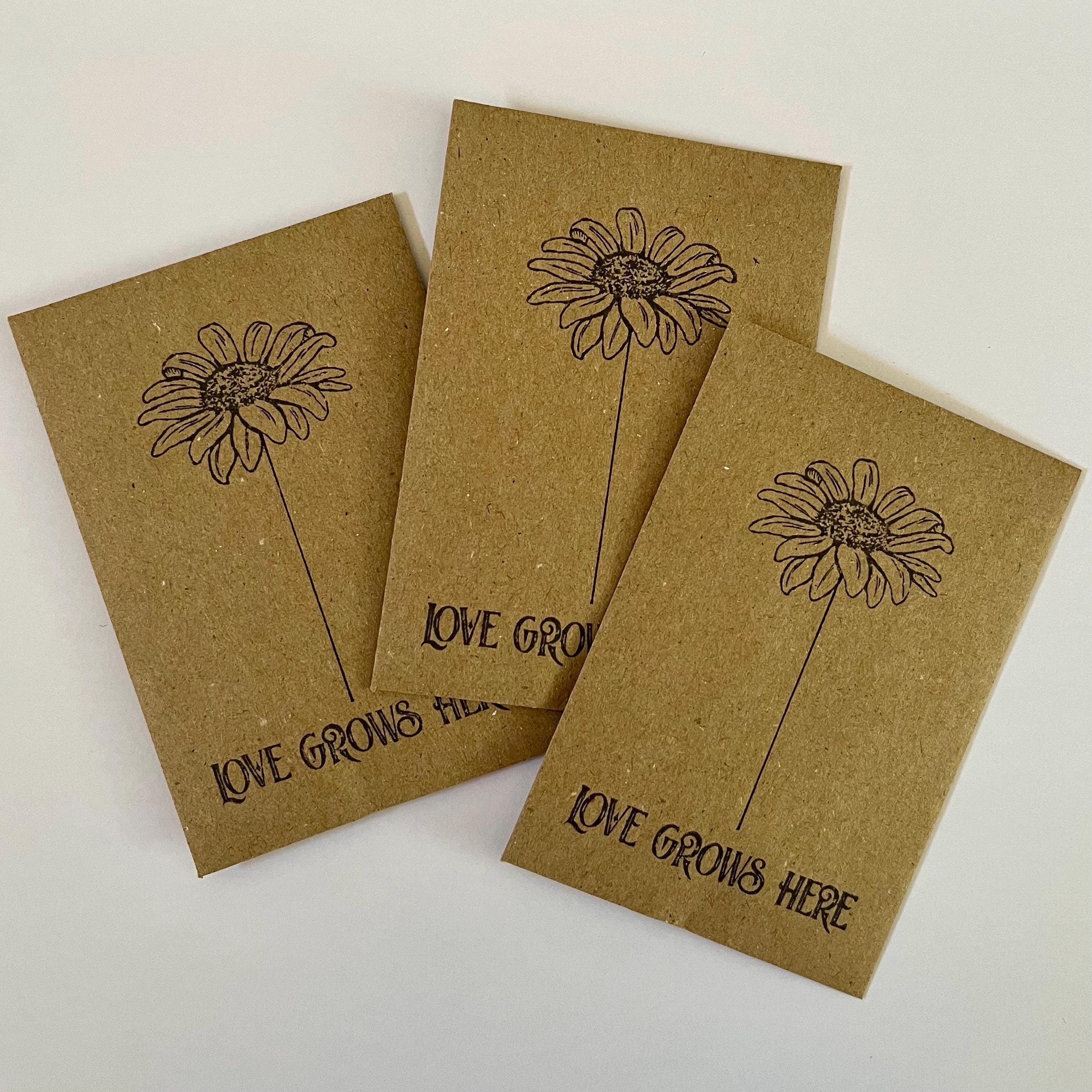 LOVE GROWS HERE: Wildflower seed gift envelopes to save the bees! Each envelope is hand stamped. You...