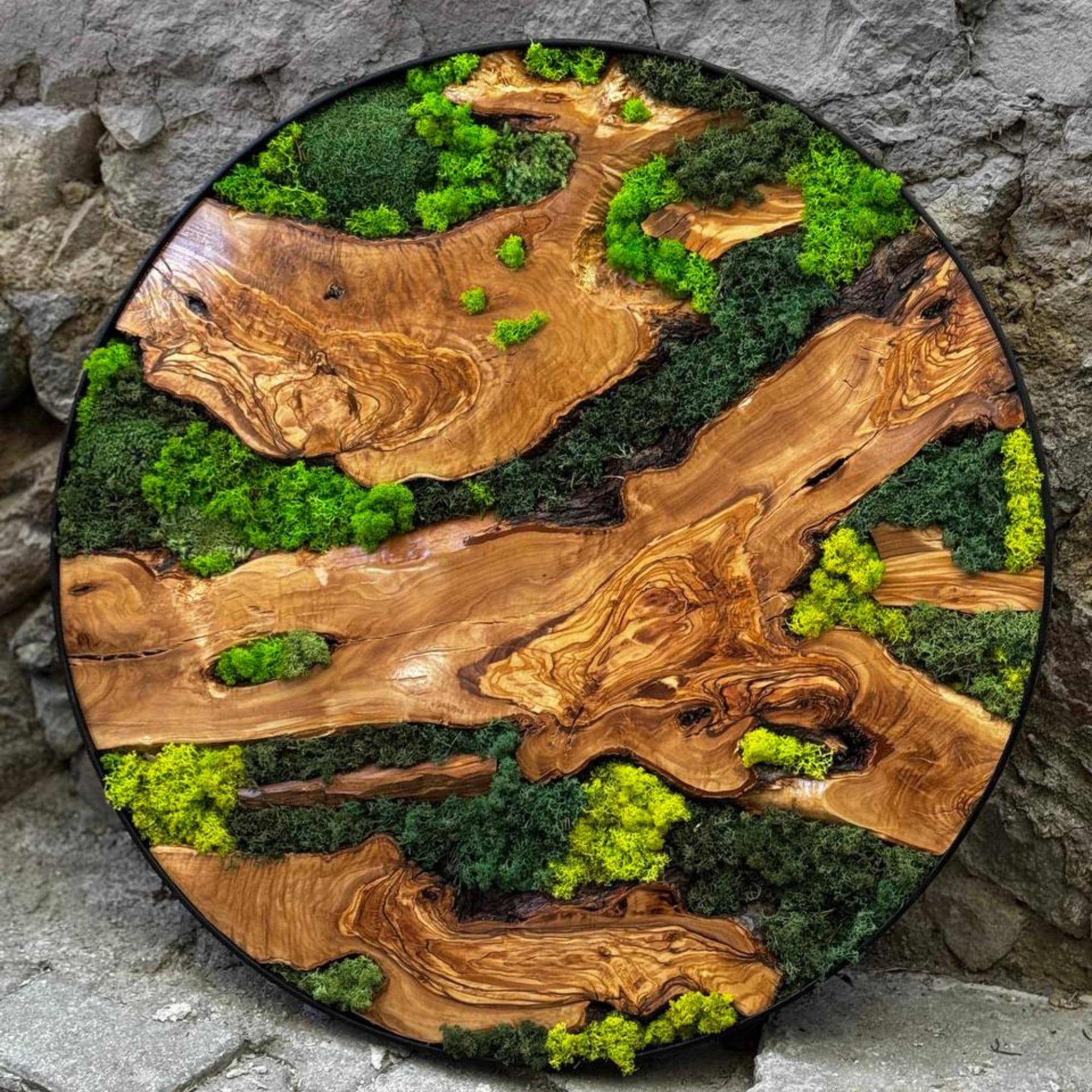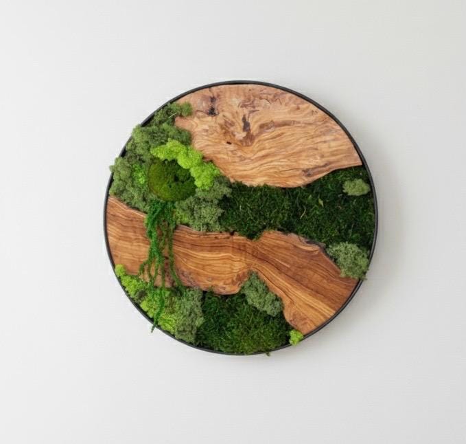 Olive Wood and Moss Wall Art, Custom Made Moss Wood Wall Art, Prese...
